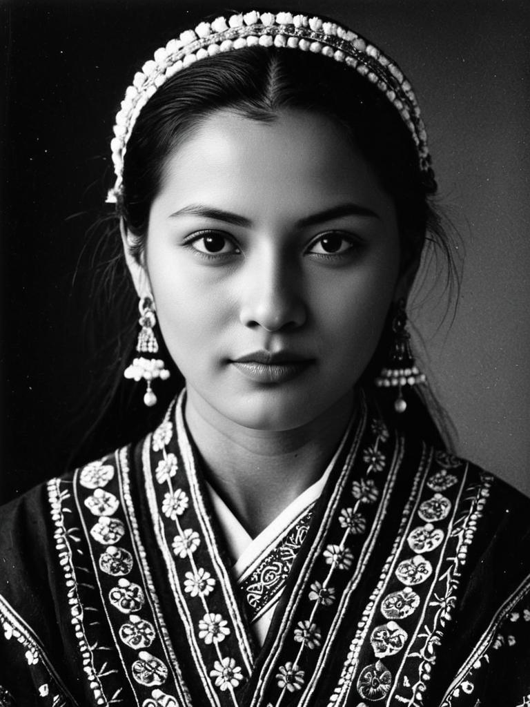 Woman in Traditional Dress, photorealistic detailed studio portrait