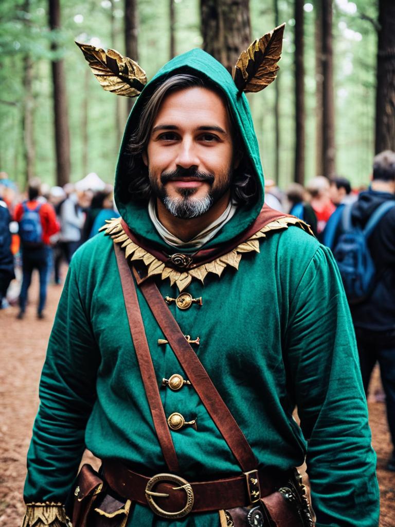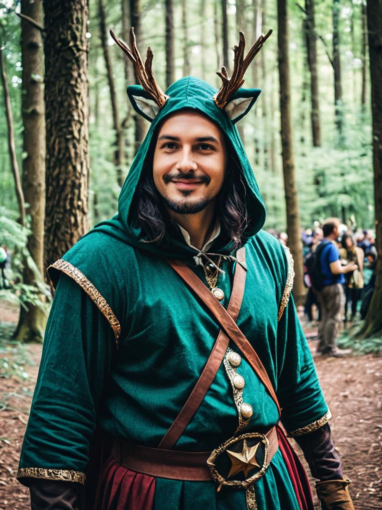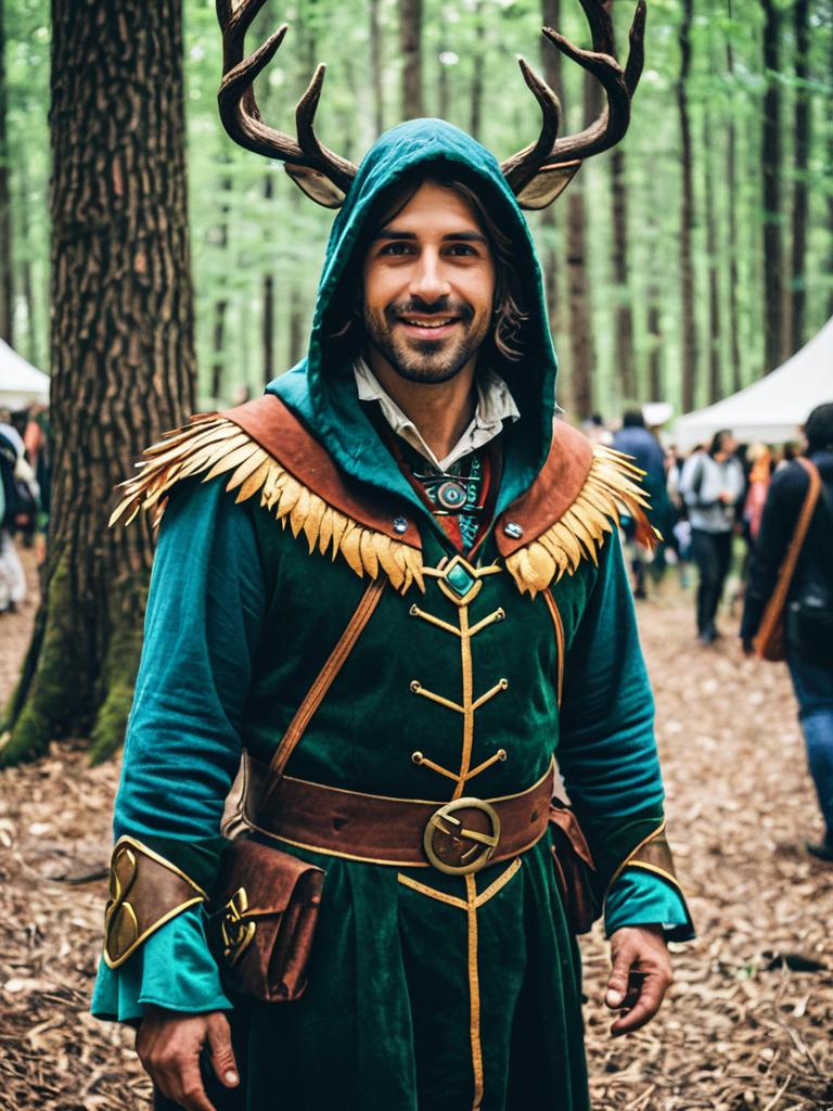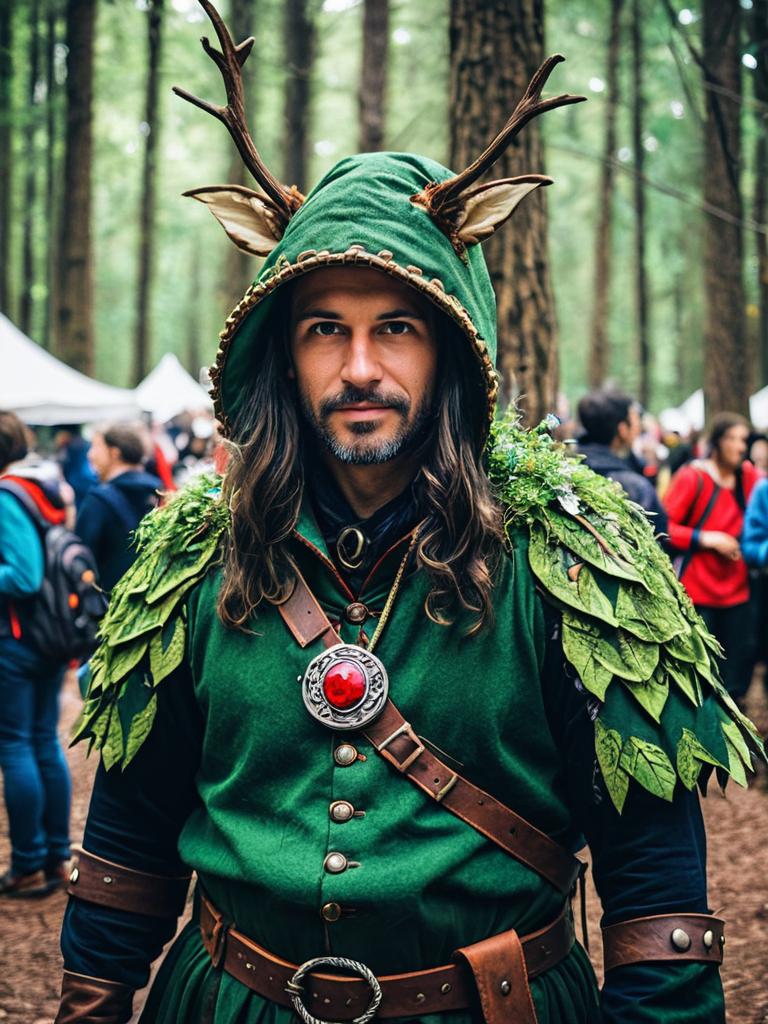 Man in Enchanted Forest Costume, candid cosplay portrait at fantasy festival