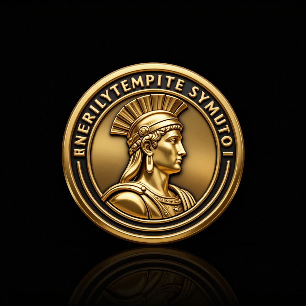 "Ring Flash Logo for brand. Roman Empire Symbol. Golden metallic style. Back ground is black. Ultra high detailed. Photo realistic.,"