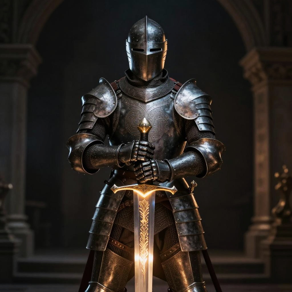 A rogue in chain mail armor DnD blending into the shadows of an ancient forest, detailed metallic texture reflecting faint moonlight, mystical atmosphere, fantasy art style