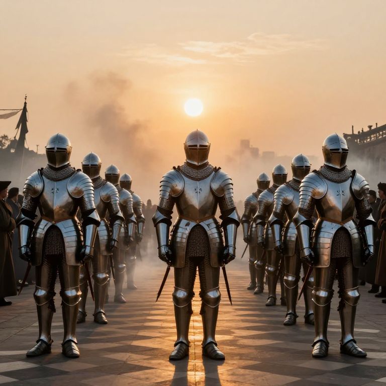 Armored Procession Under Golden Sun