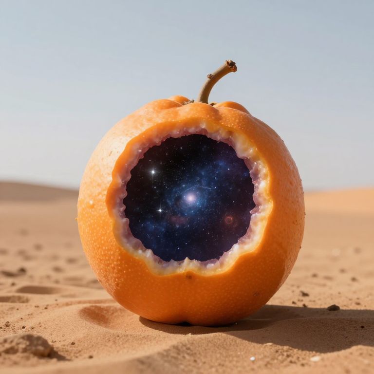 A surreal digital artwork depicts a hollowed-out watermelon with its interior transformed into a vibrant cosmic scene, featuring spiraling galaxies and starbursts of color, rendered in high-definition detail against a dark, starry backdrop, blending the mundane with the celestial in a gravity-defying harmony.