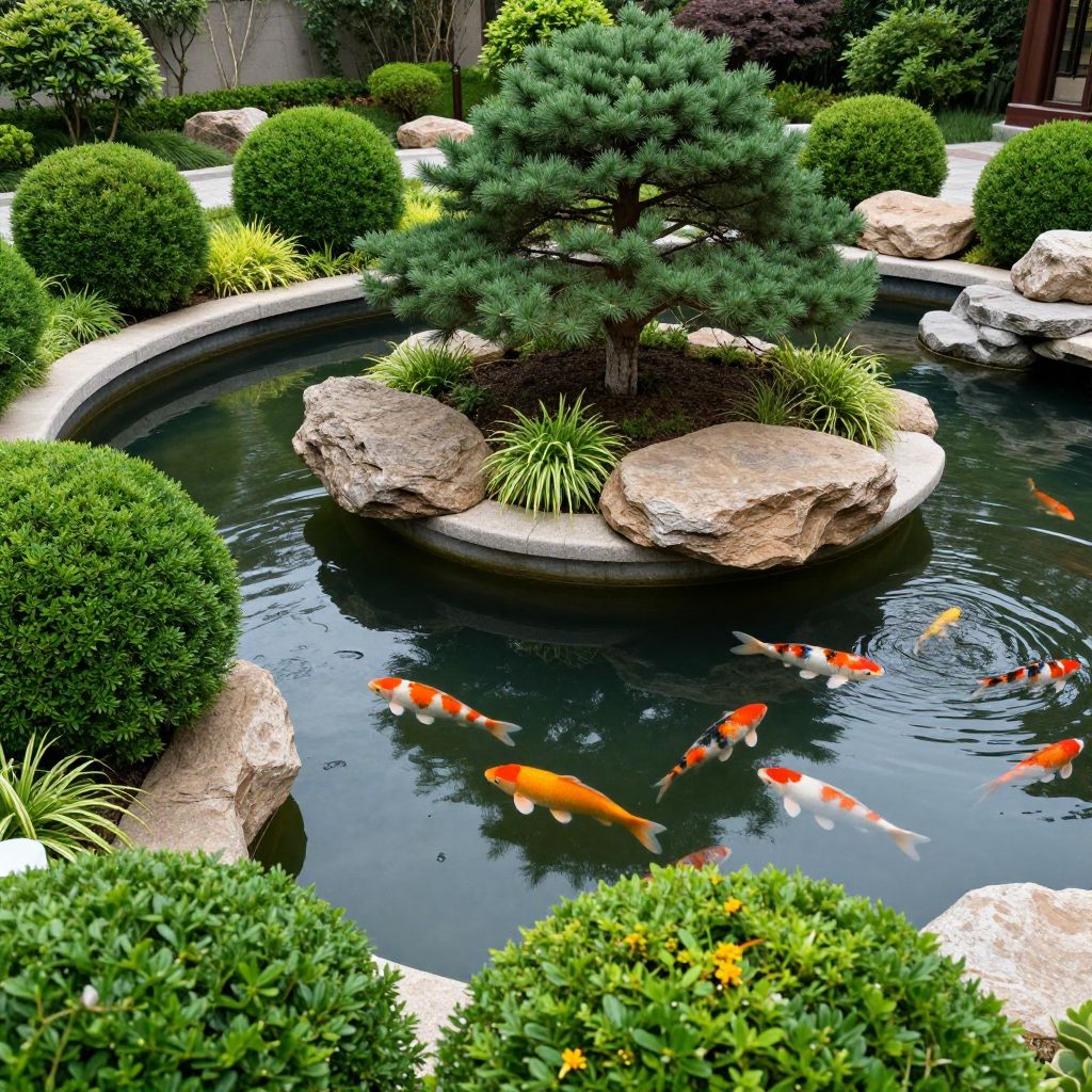 Circular Garden with Trees and Shrubs