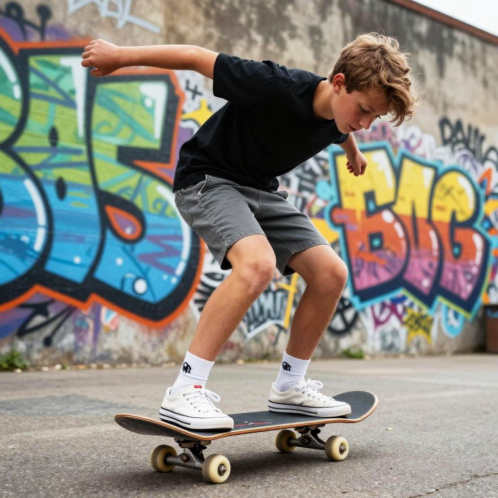 Teen Skateboarder in Urban Graffiti
