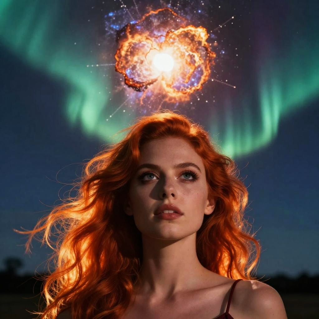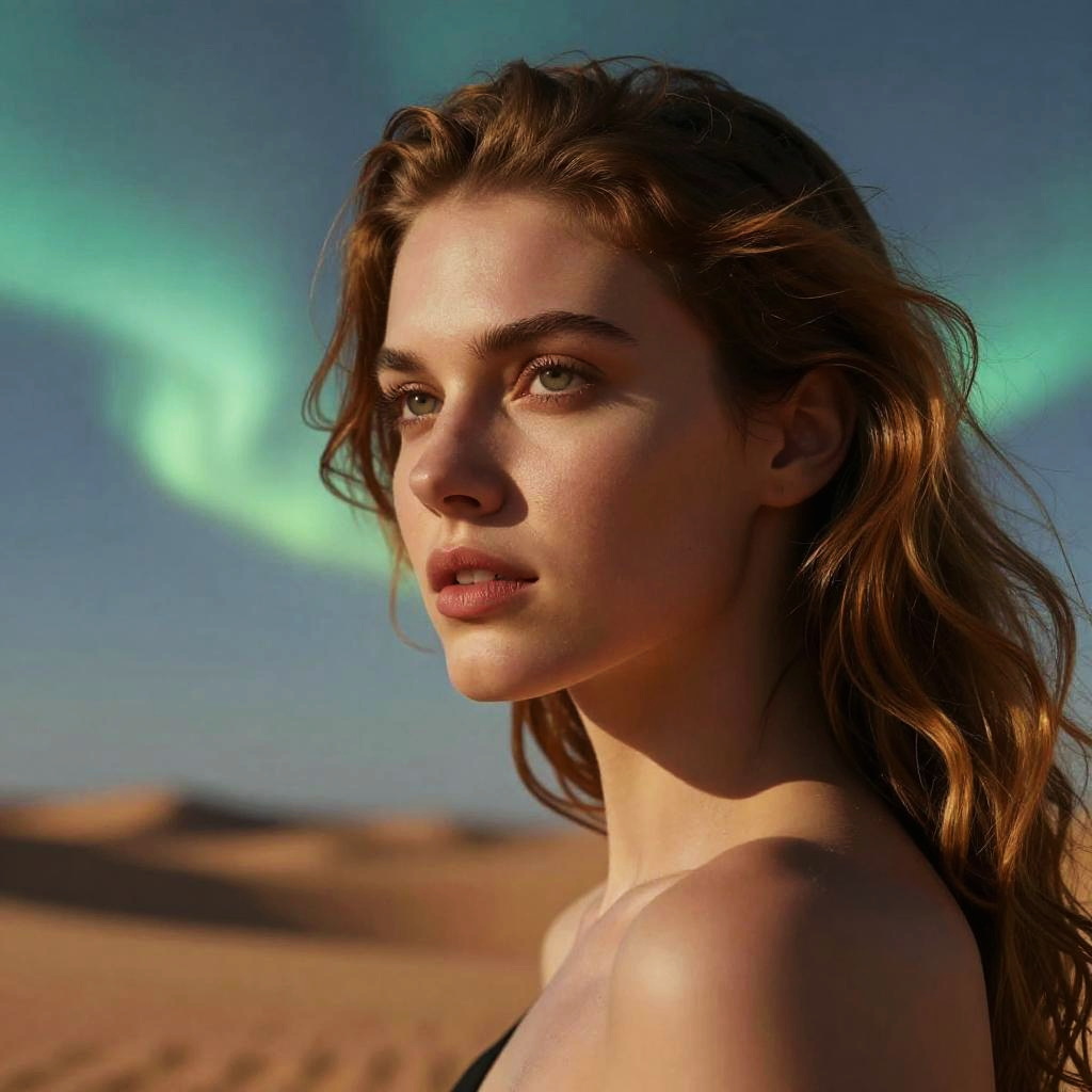 Woman with Northern Lights Hair and Frost Patterns