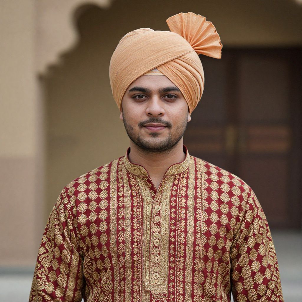 Man in Punjabi Suit in Courtyard