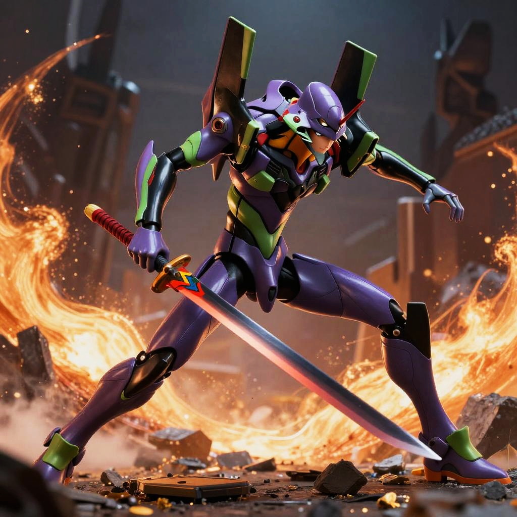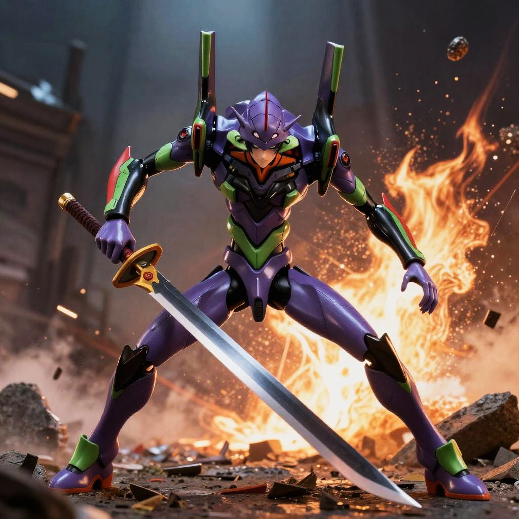 (blind box toy style:1.5)(dramatic, gritty, intense:1.4), masterpiece, best quality, 32k uhd, insane details, intricate details, hyperdetailed, hyper quality, high detail, ultra detailed, Masterpiece, super vista, Epic CG masterpiece, Shinji Ikari, hdr, dtm, full ha, in the style of mecha anime, like a god The dancing long knife charging forward battlefield, the burst meteor, the fierce battle of fighting with his life, 8K, ultra detailed graphic tension, dynamic poses, stunning colors, 3D rendering, surrealism, cinematic lighting effects, realism, 00 renderer, super realistic, full - body photos, super wide Angle, HD, 1girl, (full body:1.7