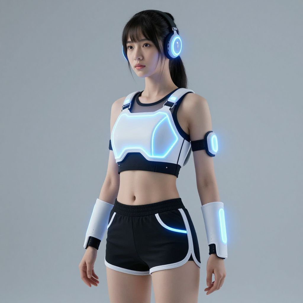 Futuristic Woman with Glowing Wearables