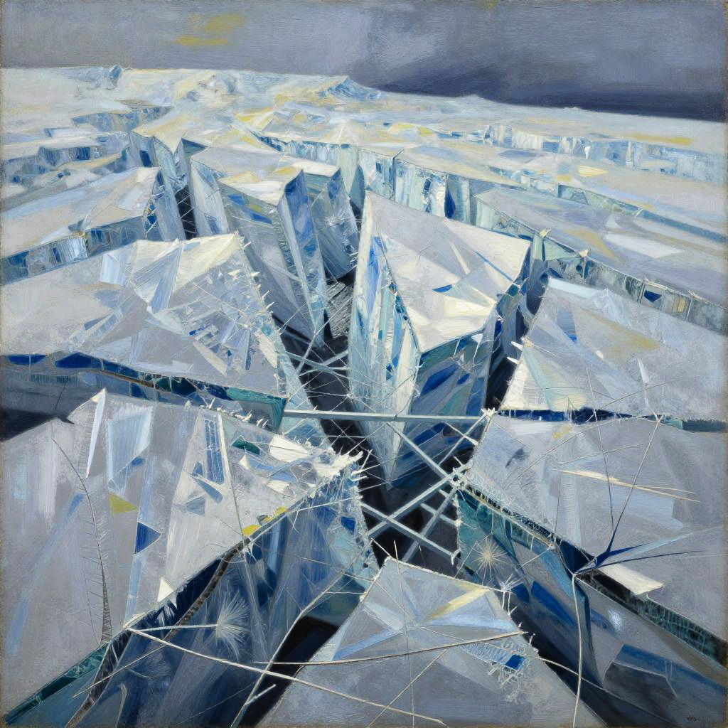Expressionist painting of floating autumn leaves under warm amber backlight, in the style of Anselm Kiefer, with delicate leaf veins.