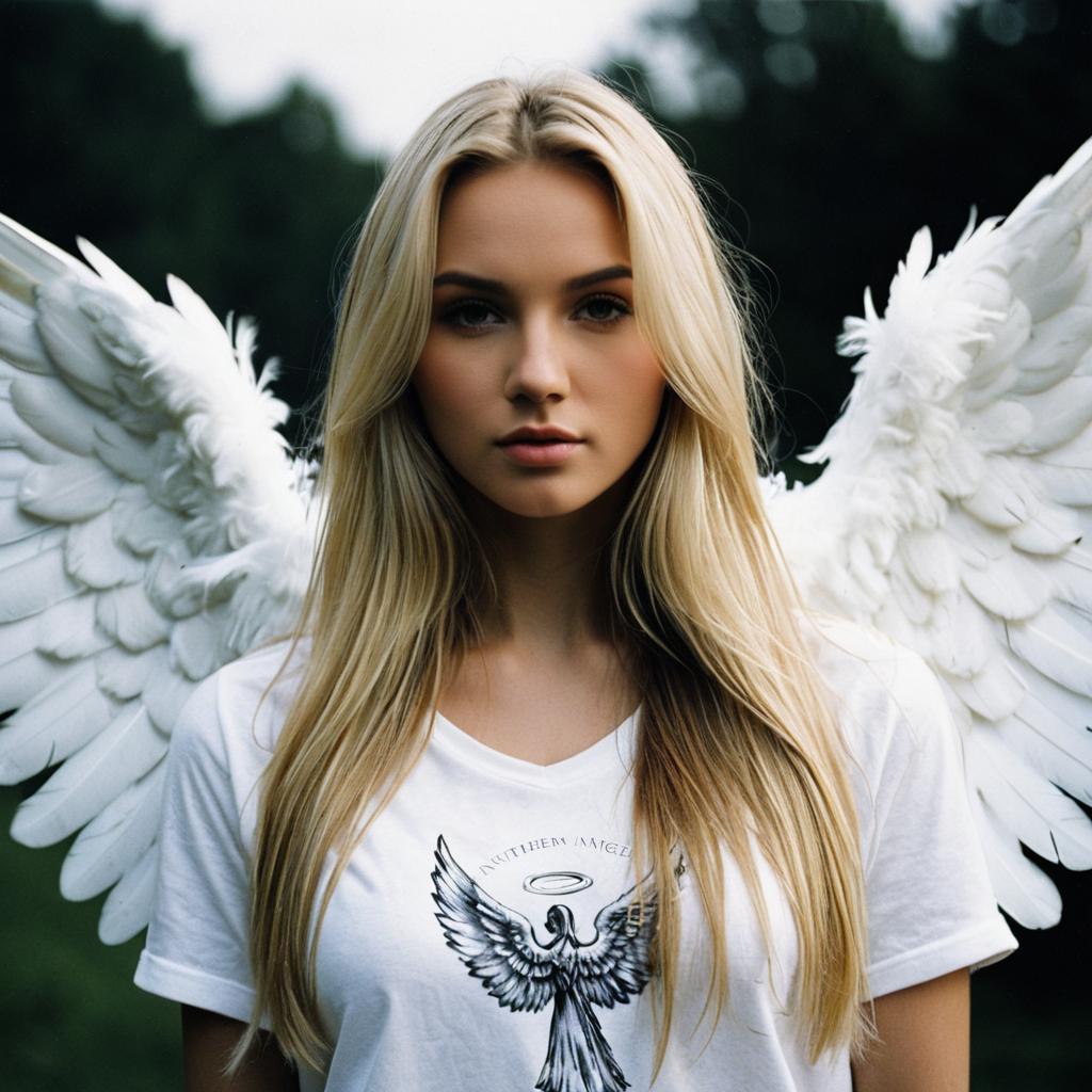 Woman in Angel Feather Costume with Wings