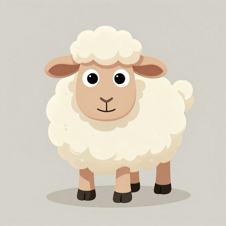 The image features a charming, cartoon-style sheep with an incredibly detailed and retro aesthetic. The sheep has a soft, fluffy white coat that covers its entire body, giving it a fluffy and cuddly appearance. Its ears are long and pointed, with a gentle curve at the tips, and are a light brown color. The sheep's eyes are large and expressive, with wide, round pupils that give it a friendly and curious look. The nose is small and black, and the mouth is a simple, curved line. The sheep's legs are short and sturdy, with black hooves, and it stands on a light gray background that has a subtle texture, adding depth to the image. The overall composition is simple yet effective, with the sheep being the central focus, and the background providing a neutral canvas that allows the character to stand out. The retro style is evident in the simplicity of the design and the use of soft, pastel colors, creating a nostalgic and endearing atmosphere.
