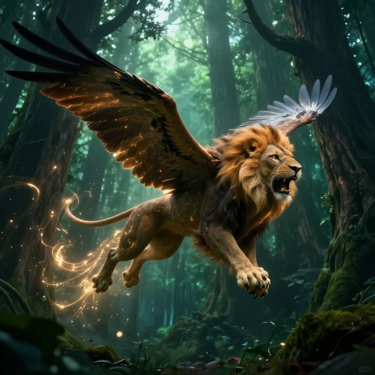 Regal Black Lion in Enchanted Forest