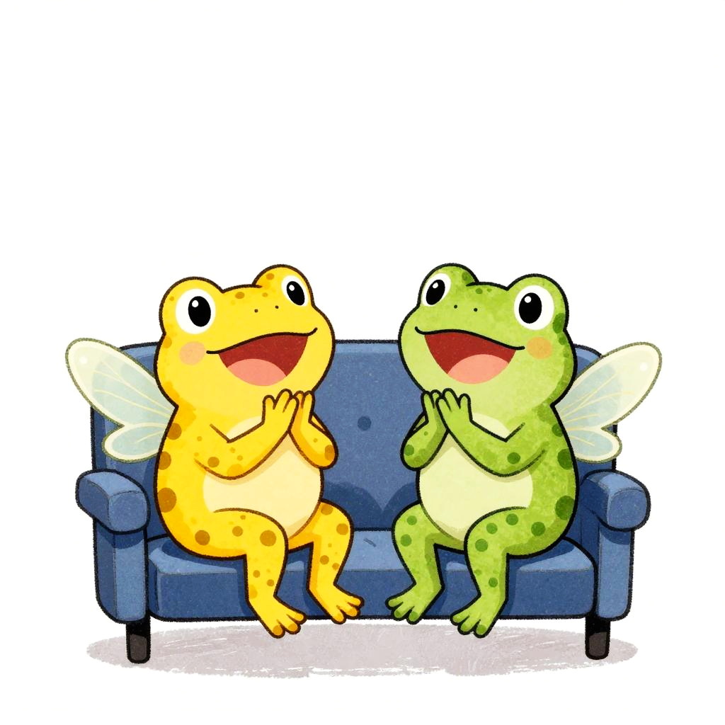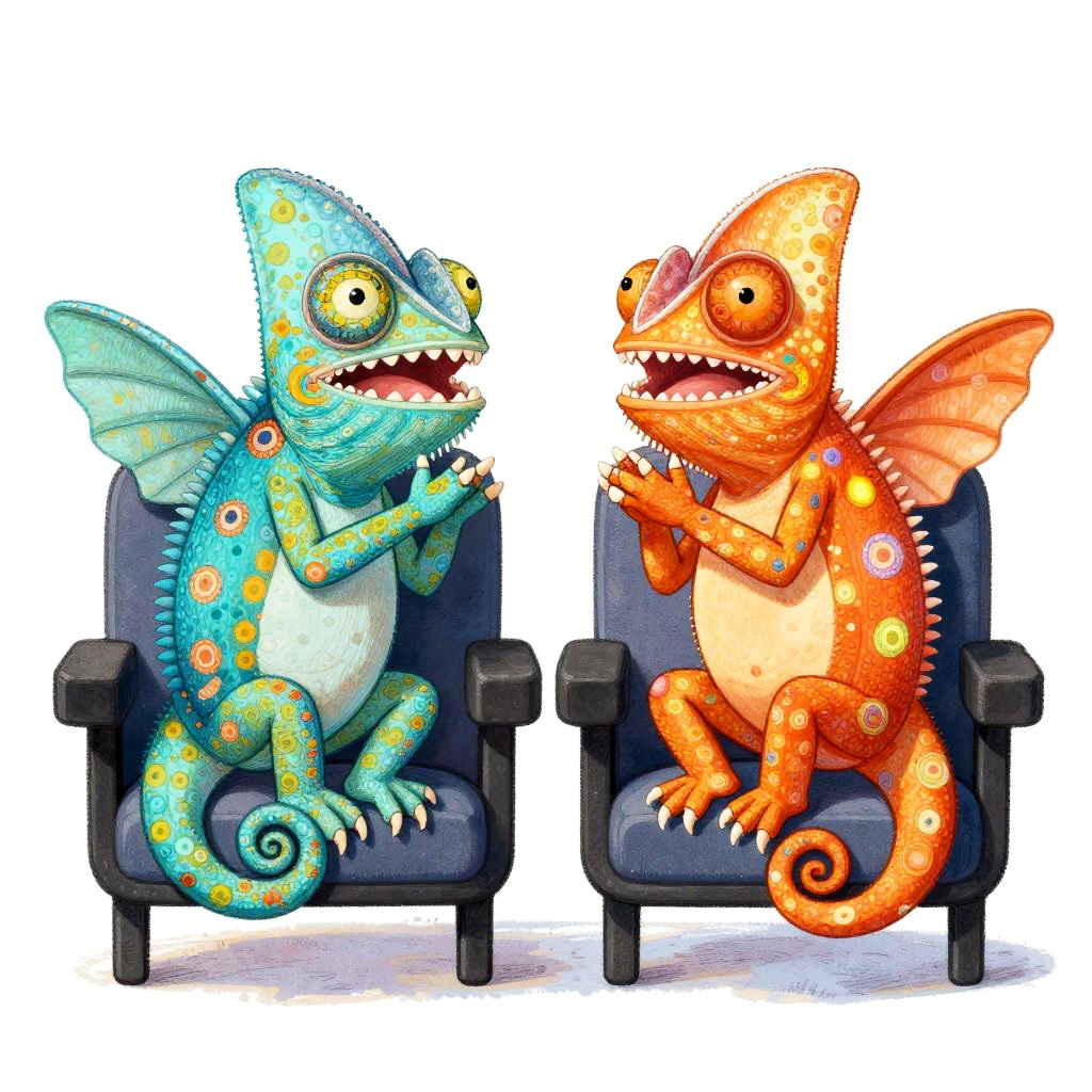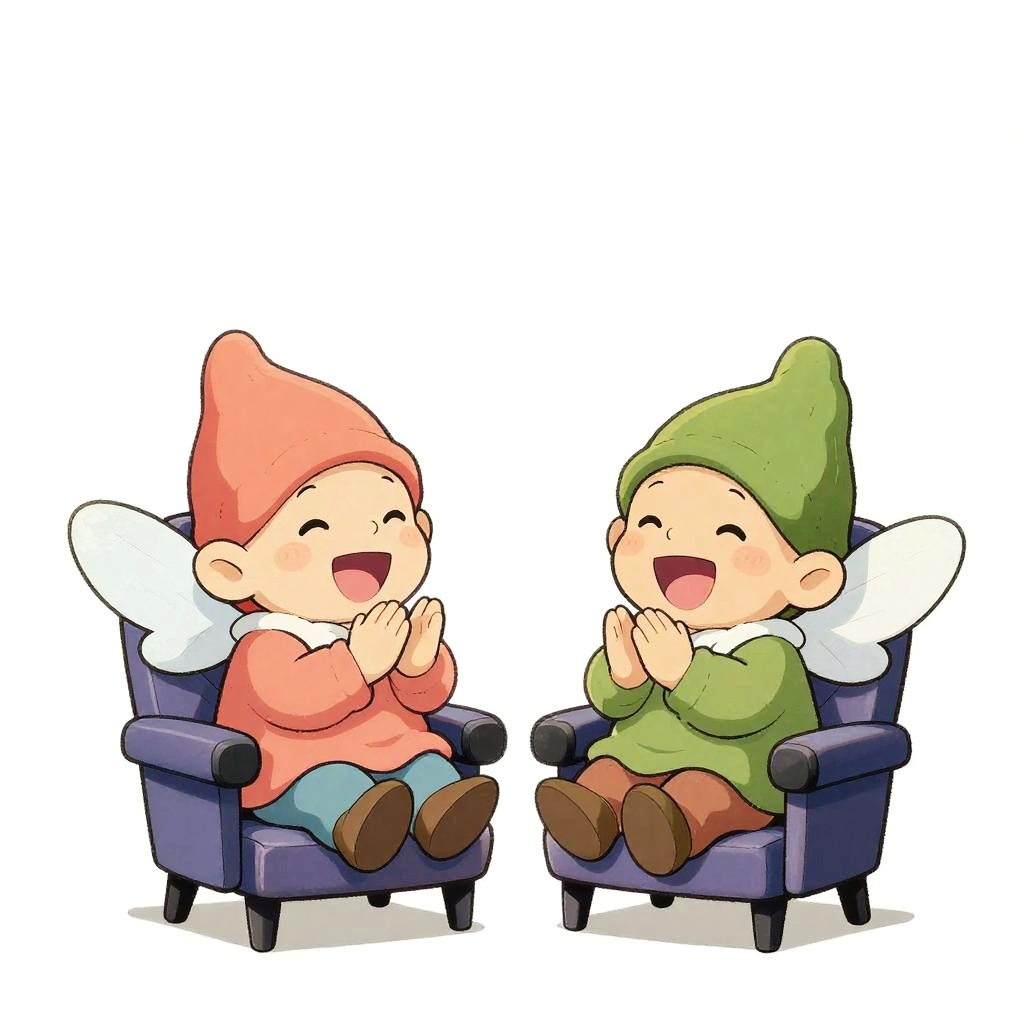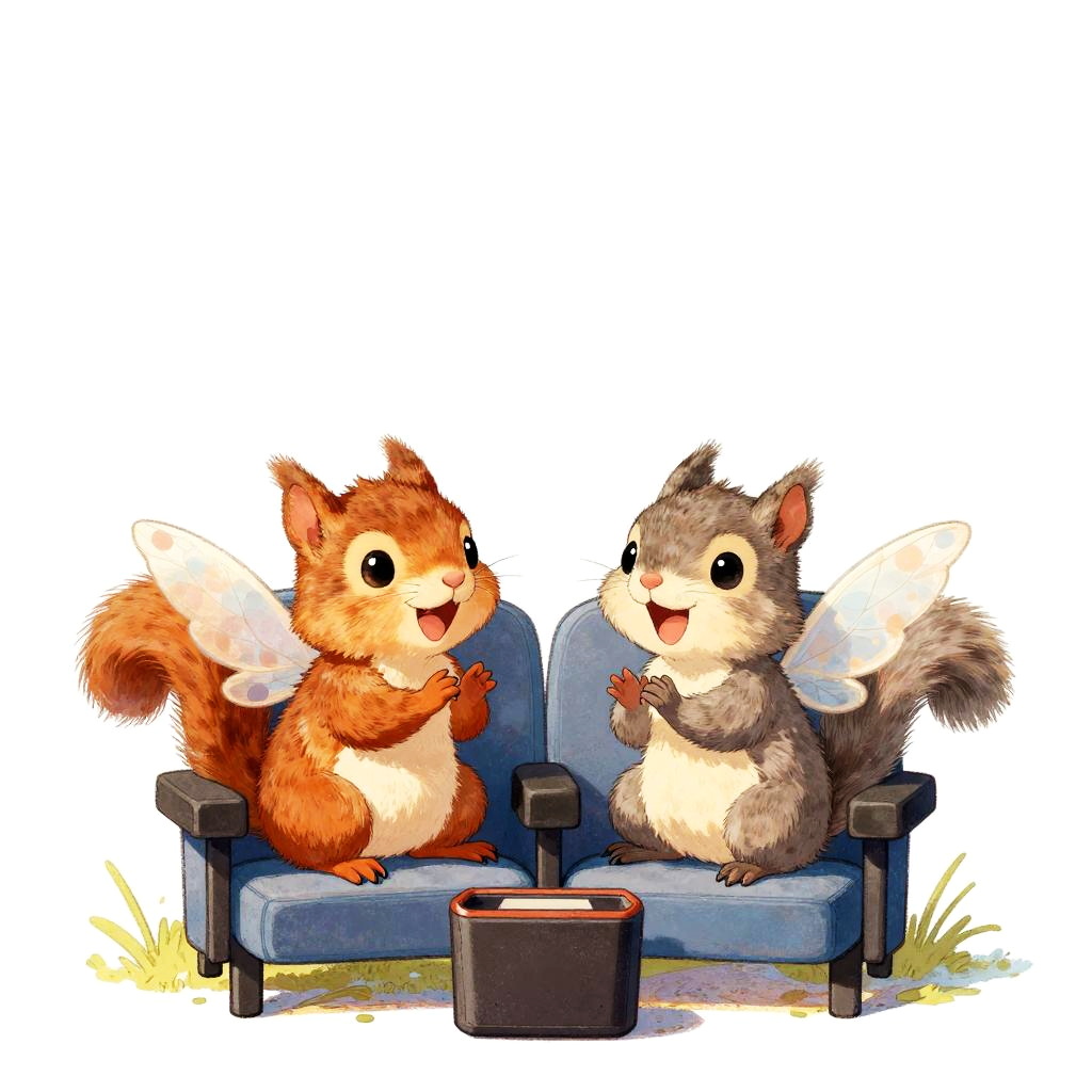 Artstation David Wiesner, white background, cute illustration, 2 friendly mini turtles, one with moss green shells, the other one with olive green shells, both have pretty wings, both fairies laughing, both sitting in movie theater seats while watching a movie, both fairies clapping, David Wiesner style, v5, white background