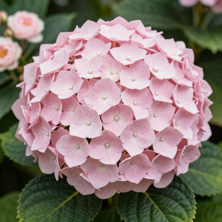PALE PINK HYDRANGEA WITH COTTAGE ROSES AND PEARLS