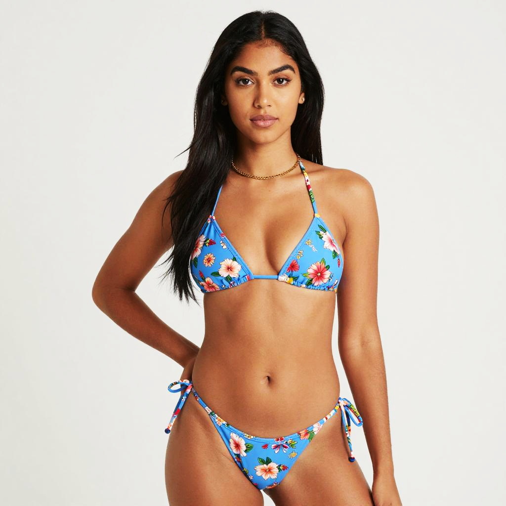 Woman in Floral Bikini on White Background