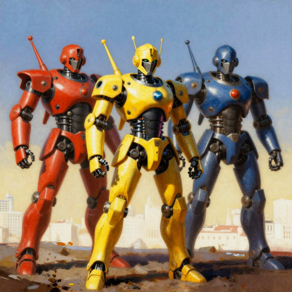 Vibrant Robotic Knights in Retro Style