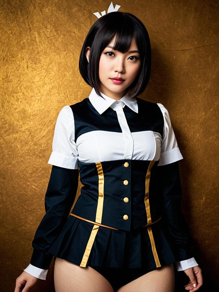 Sexy cosplay woman character wearing Saki Hanajima costume. Realistic photo. Jane Doe dressed as Saki Hanajima --sref 1404
