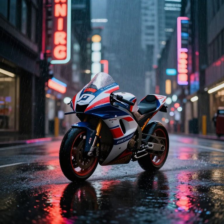 Rainy Neon Urban Motorcycle Race