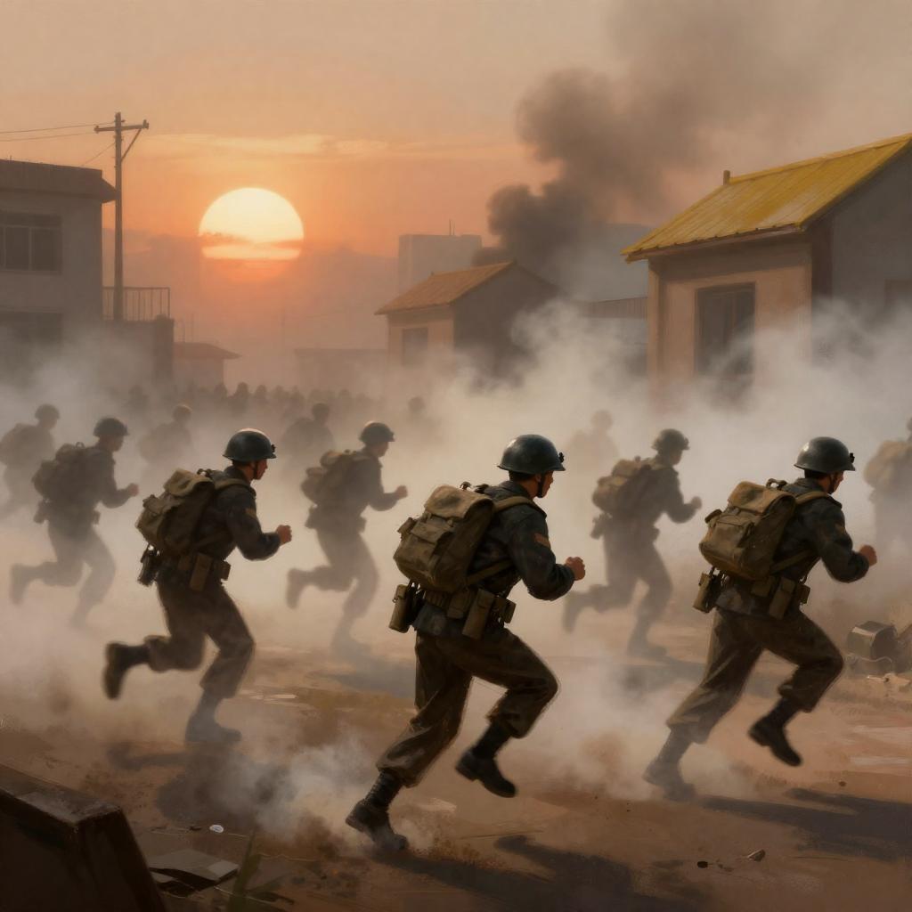 Four Soldiers in Winter Night Patrol