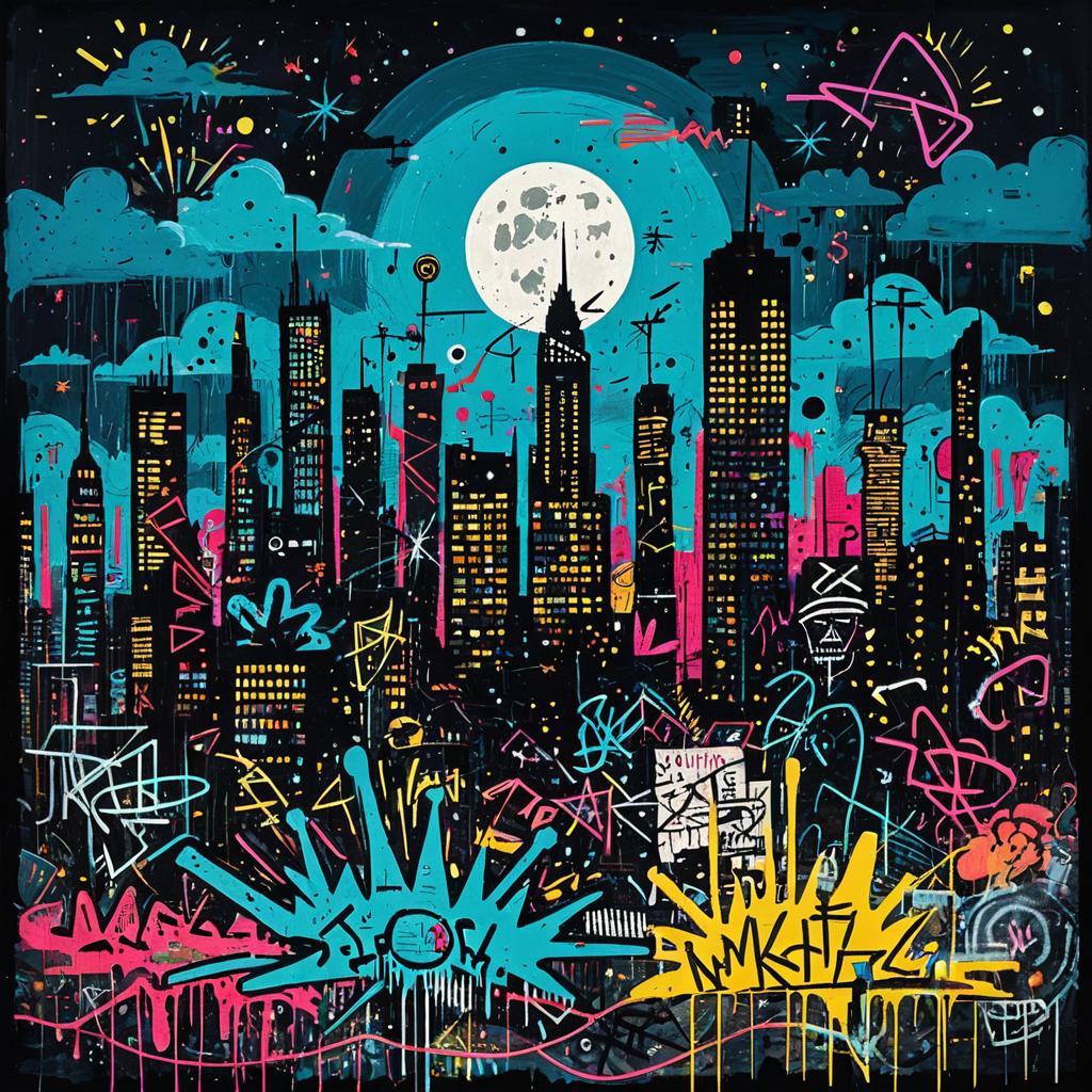 A colorful abstract canvas with textured brushstrokes layered with abstract cityscape elements, vibrant complementary colors, negative space, neo-expressionism, bold shapes, contrasting tones, and intricate organic details