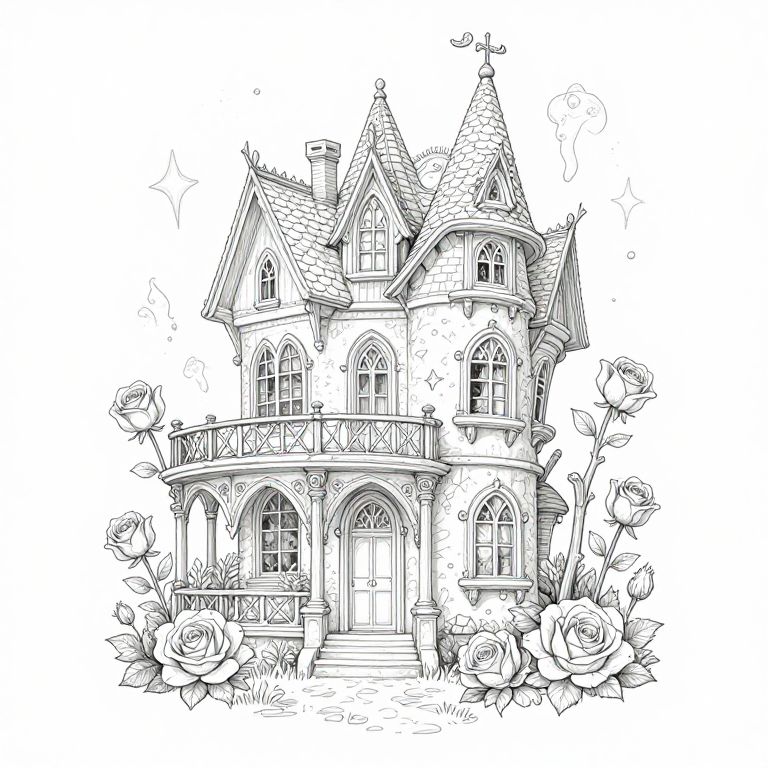 Gothic Fantasy House Coloring Page