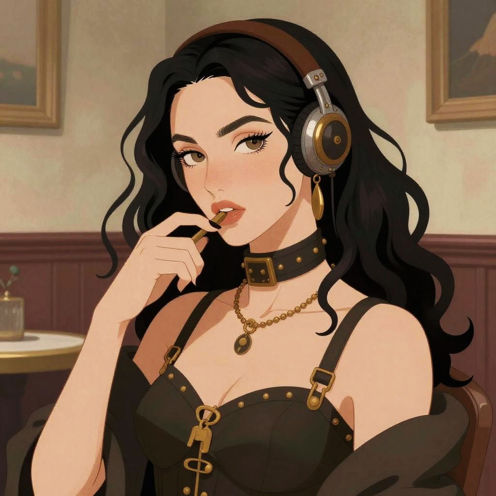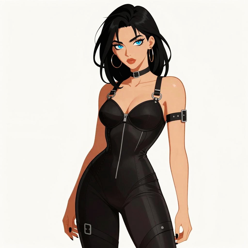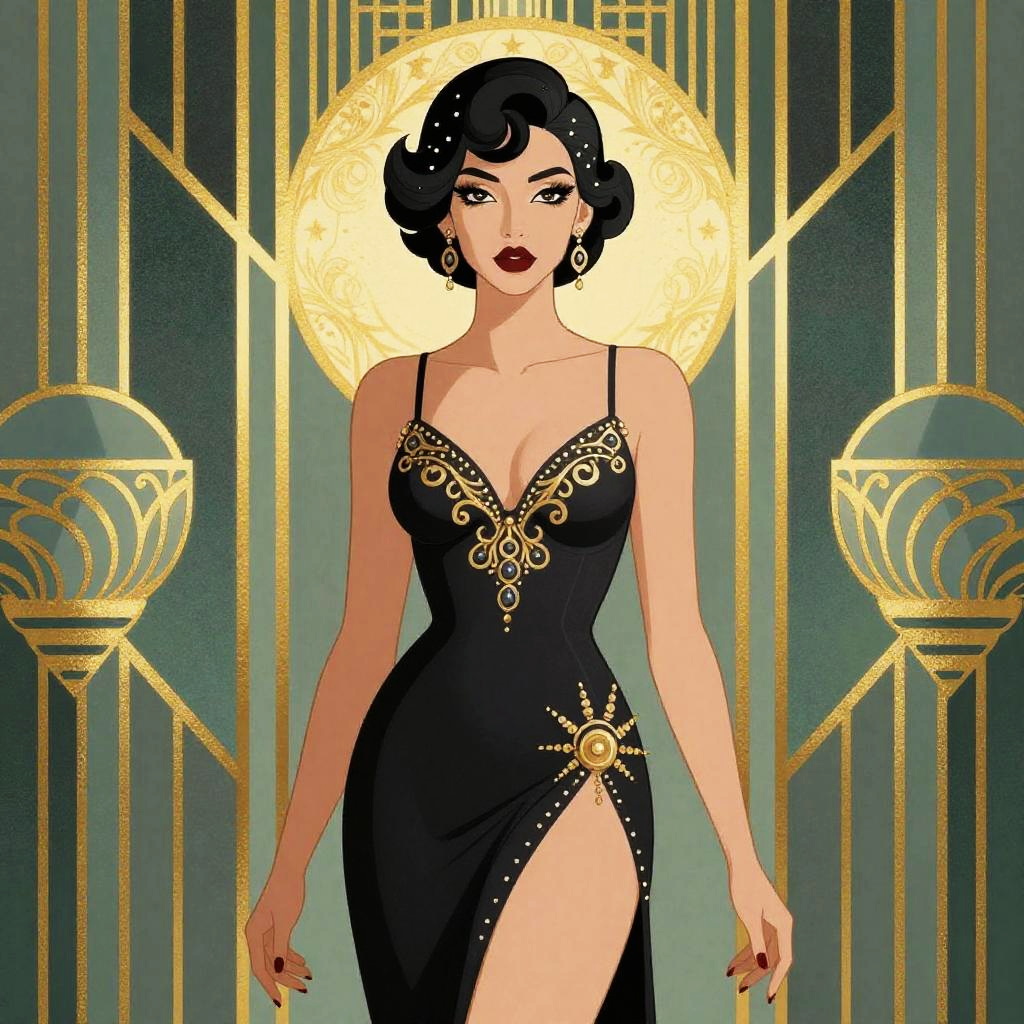 Woman illustration. Cartoon, erotic vibe. Fusion of styles Art Nouveau style and Silkpunk style