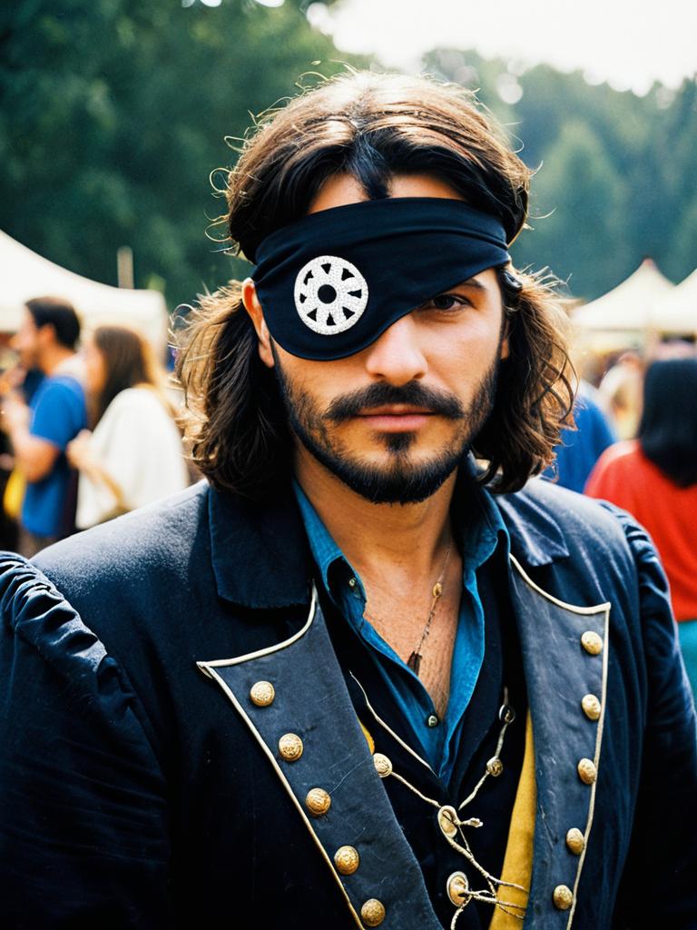 Man in Eye Patch Costume, candid cosplay portrait at renaissance fair