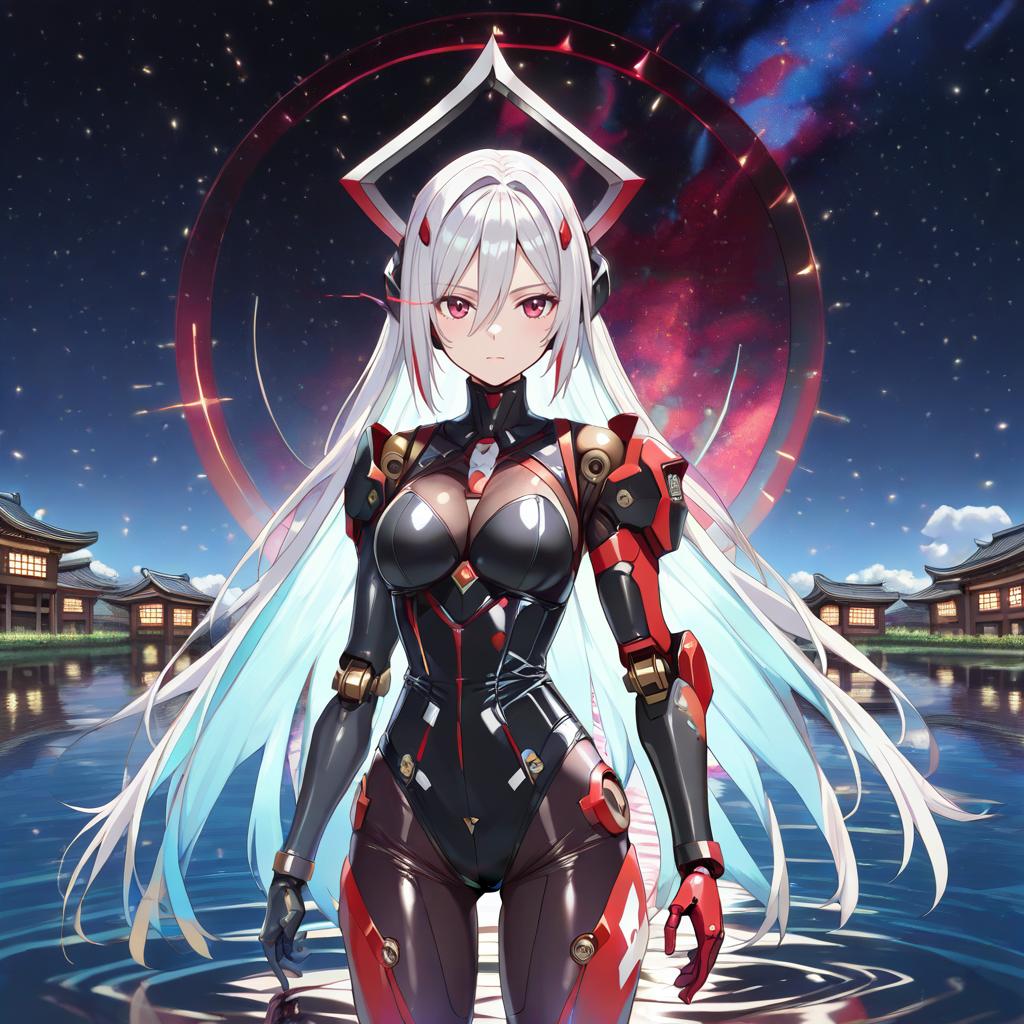 Intricate Mecha Musume in Starry Landscape
