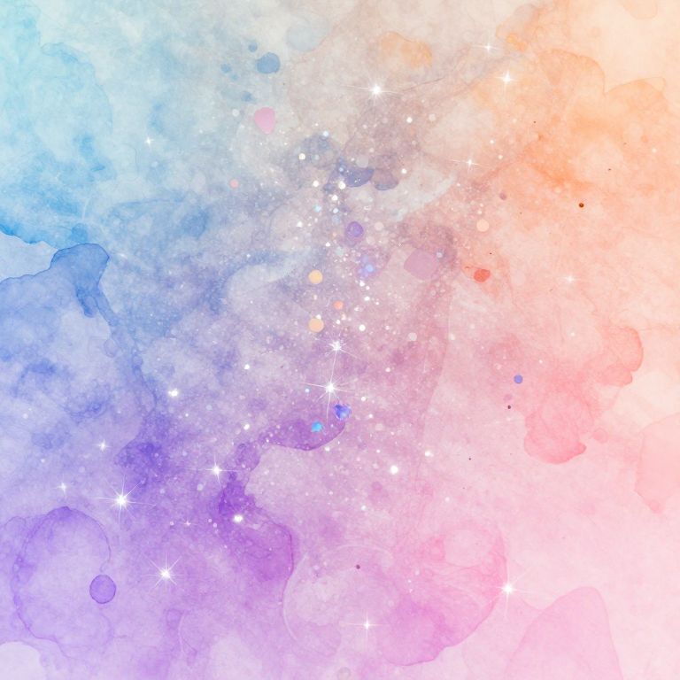 The image presents a winter celestial abstract background with a pastel gradient transitioning from cool blues and purples on the left to warm oranges and pinks on the right. The scene is adorned with iridescent glitter and sparklecore elements, creating a sense of depth and dimension. The glitter is scattered throughout, with some concentrated in the center, while others are dispersed across the background. The texture appears to be a mix of watercolor and viscous, giving the image a fluid and ethereal quality. The overall composition is balanced, with the glitter and sparklecore elements adding a dynamic interplay of light and shadow, enhancing the visual appeal of the abstract scene.