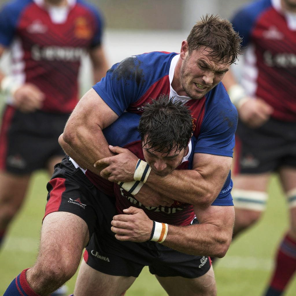 Fierce Rugby Tackle in Action