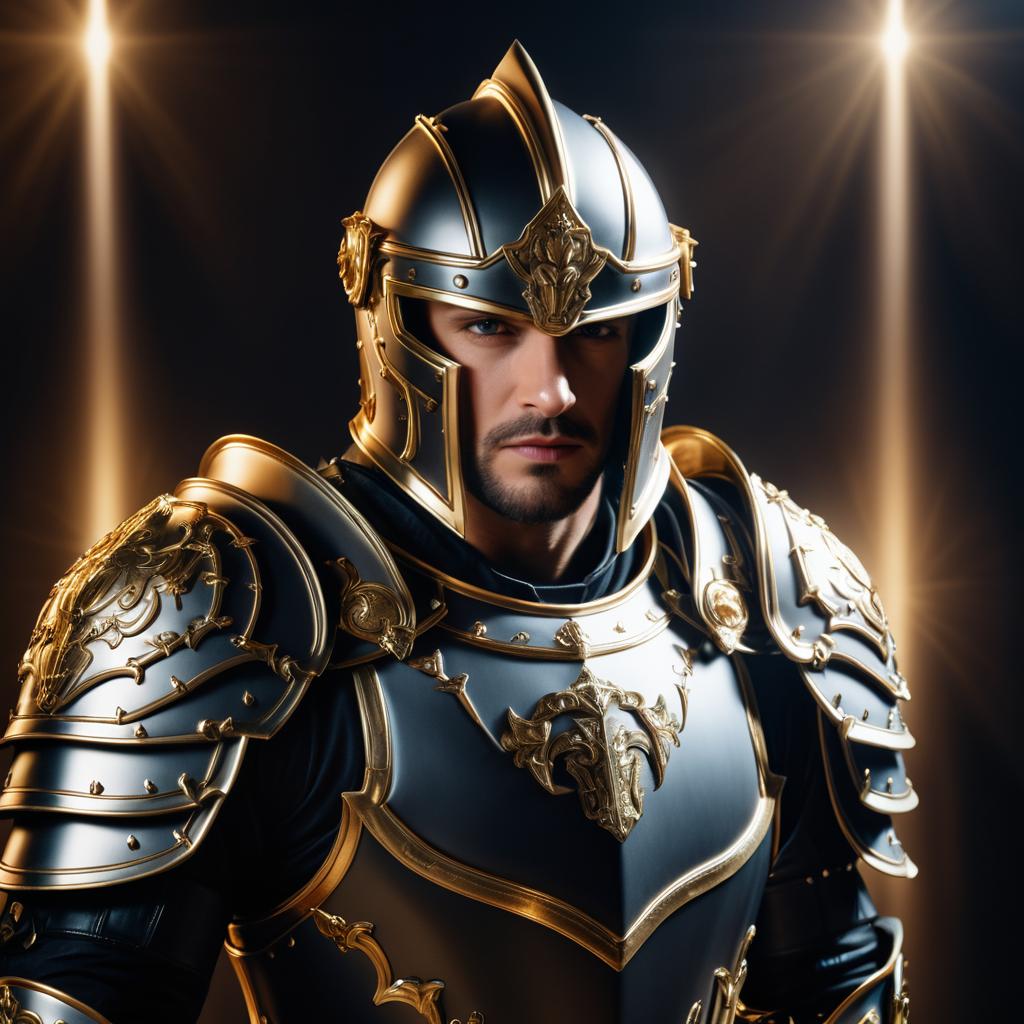 Valiant paladin wearing Dolce & Gabbana armor, luxury materials, cinematic and professional studio lighting, sharp focus, 4K.