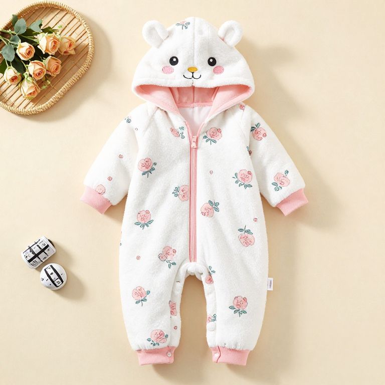 2018 Baby Clothes Newborn Baby Girl Winter Clothing Baby Thickening Cotton Animal Rompers Newborn Floral Hooded Jumpsuit