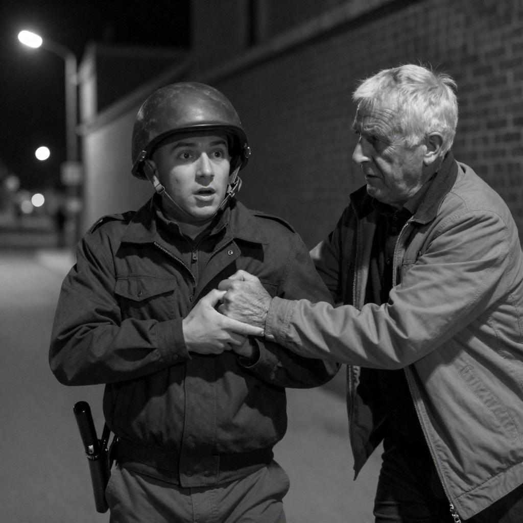 Intense Night Bench Encounter Between Generations