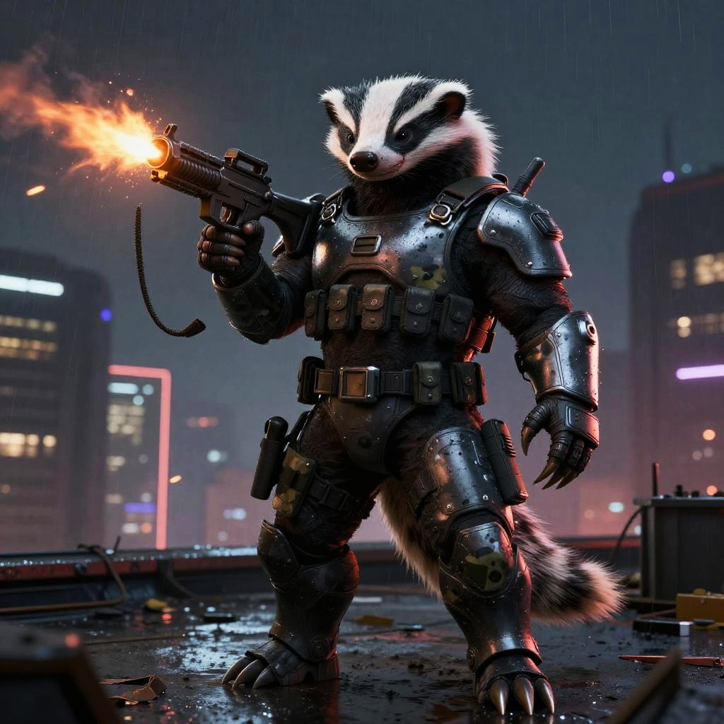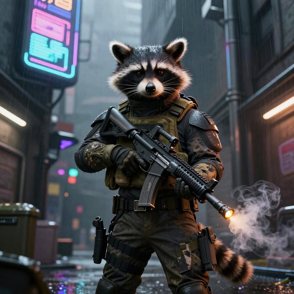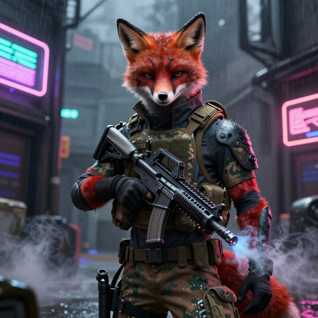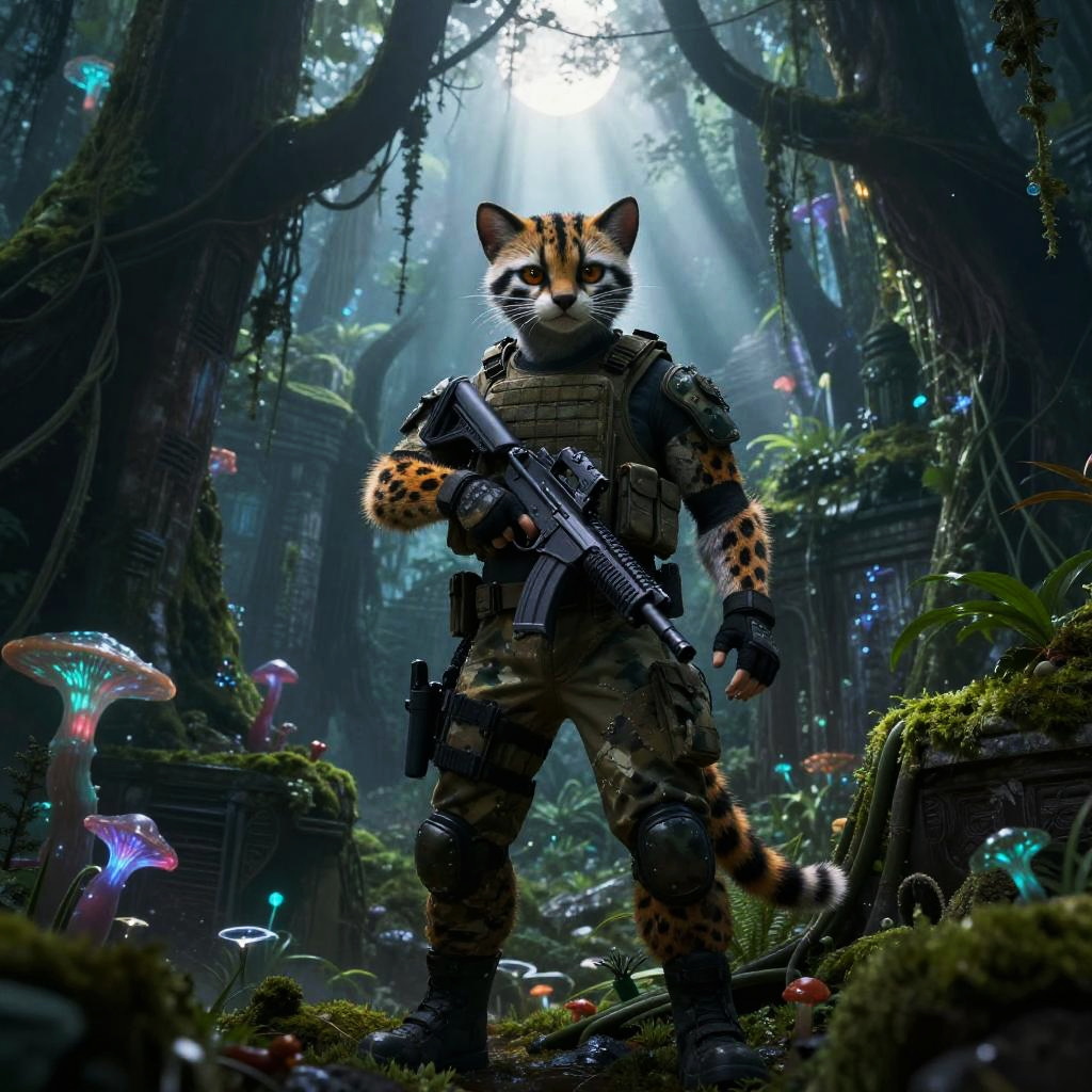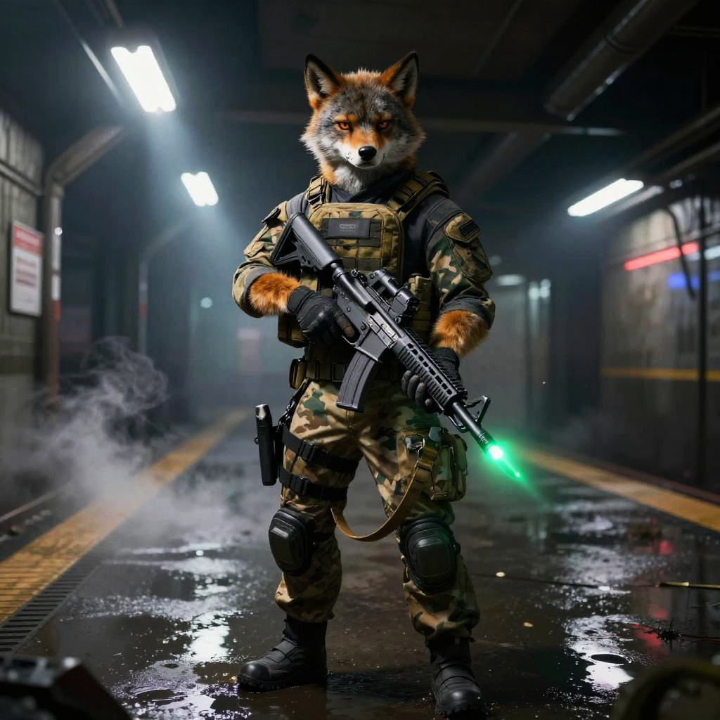 Absurdres, (realistic:1.5), (masterpiece, Extremely detailed CG unity 8k wallpaper, best quality, highres:1.2), (ultra_detailed, UHD:1.2), perfect illumination, rim lighting, sidelighting, volumetric fog, god rays, (dark background:1.3), (savannah cheetah recon commando (lean spotted fur, desert-tan sprint-optimized tactical skinsuit, rangefinder visor, lightweight aerodynamic load-bearing vest, athletic build):1.4), (furry:1.1), animal, solo, standing, tactical armor, gloves, load bearing vest, pouches, holster, camouflage accents, sun-baked abandoned windfarm on cracked savannah plains at golden hour with dust motes, broken turbine blades, wavering heat shimmer, shafts of god rays and low dusty fog, holding, weapon, gun, suppressed lightweight long-barreled compact DMR-PDW hybrid with warm golden muzzle glow, low-profile scope, folded bipod, tactical sling and faint dust plume, sling, muzzle smoke, cinematic DOF, particles, unreal engine, (no humans:1.2), blurry background