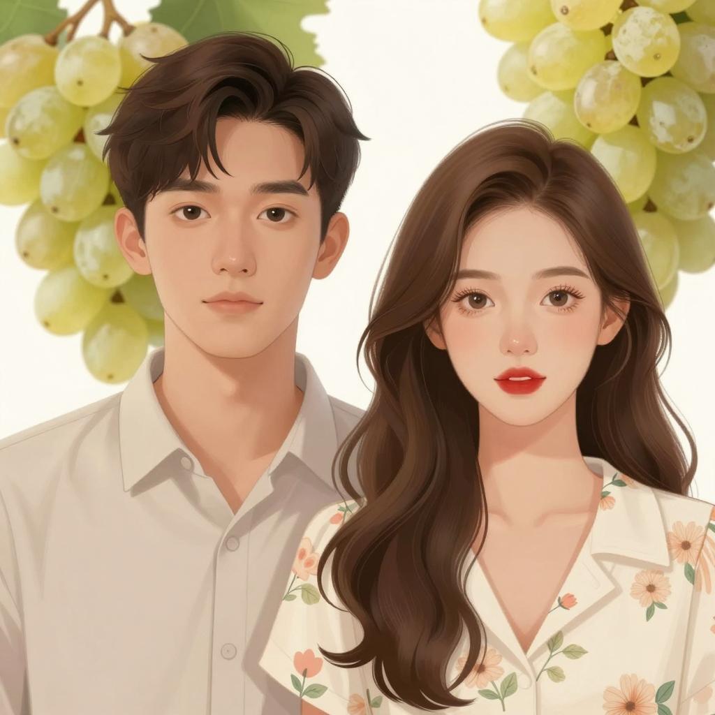 Digital illustration showing three young adults from the shoulders up against a plain background. The woman in the center has fair skin, dark wavy hair, wears a light pink blouse and a yellow hat with a neutral expression. The man on the left has dark hair, serious expression, and wears a blue shirt. The man on the right has dark hair, is winking, and wears a green shirt. The three characters are closely grouped together.