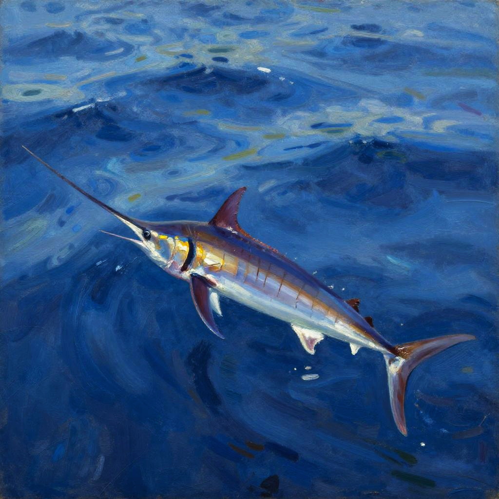 Agile Swordfish in Impressionist Ocean