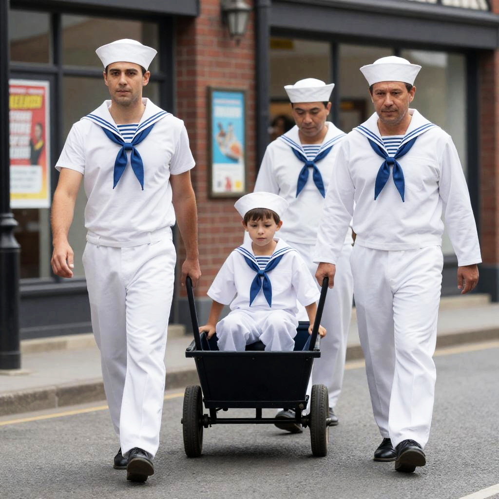 Sailors and Boy: A Charming Street Scene