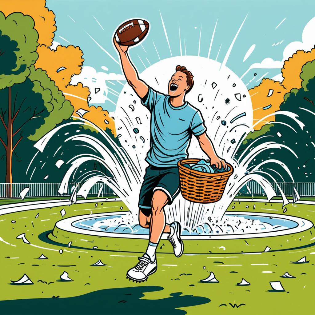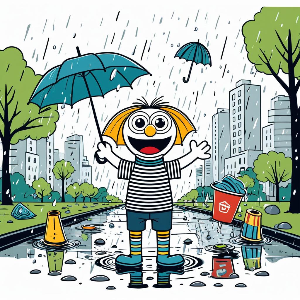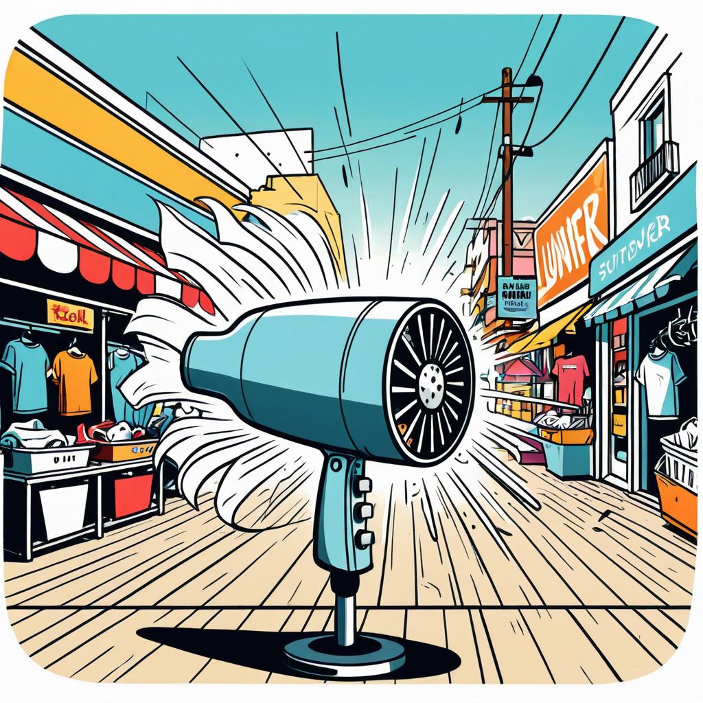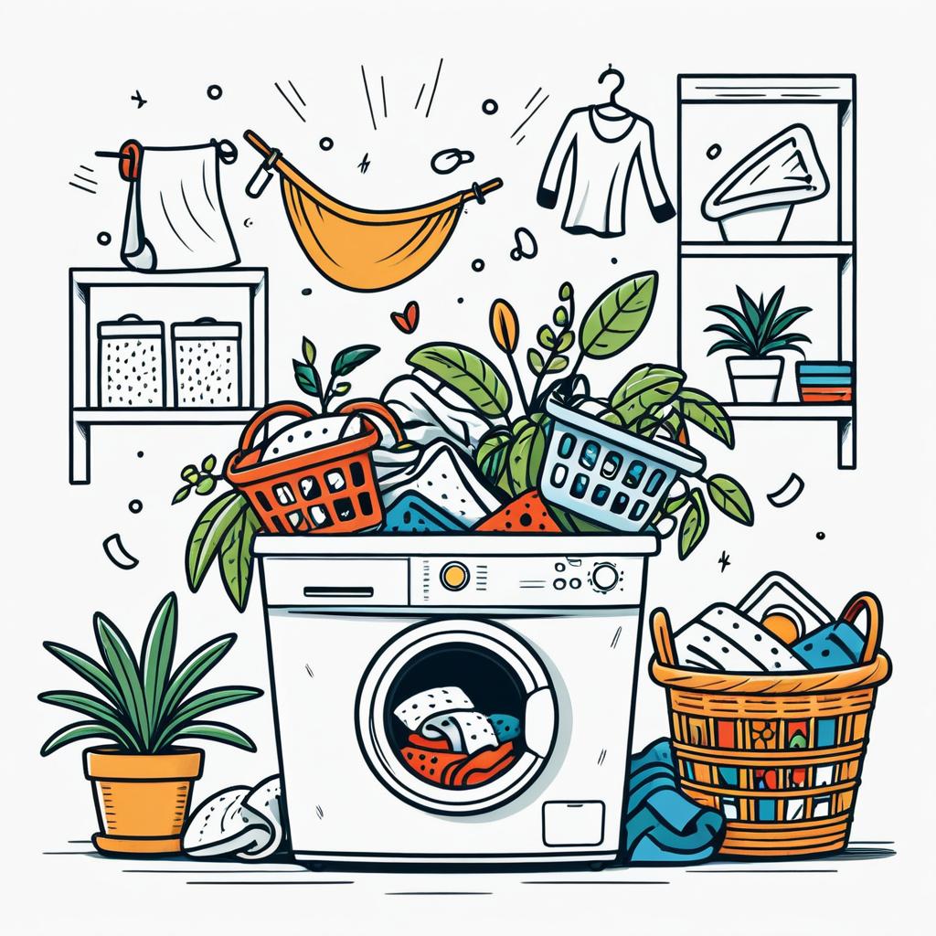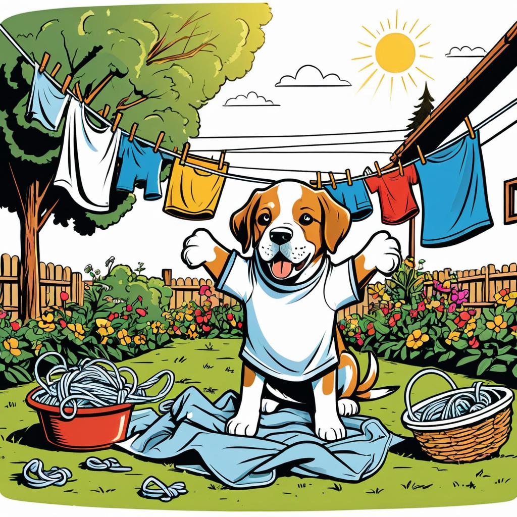 A colorful cartoon illustration of a grumpy vacuum cleaner with eyes and arms, standing in a cluttered attic filled with scattered laundry items and old wooden furniture. The scene features bold contour lines, flat colors, and dynamic lighting on a white background, creating a chaotic and humorous atmosphere. The vacuum is actively causing the mess, highlighting a funny and lively vibe.