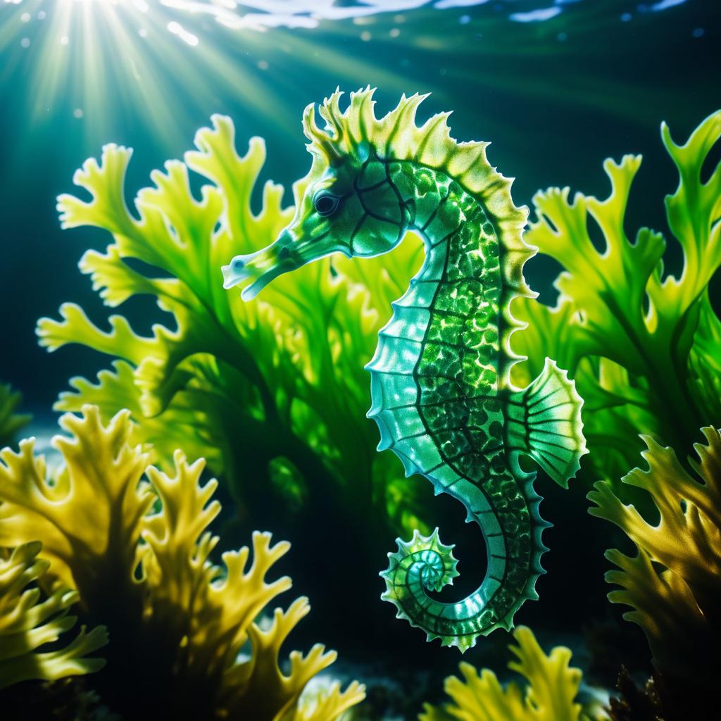 Seahorse Among Seaweed Under Sunlight