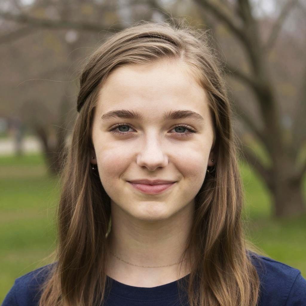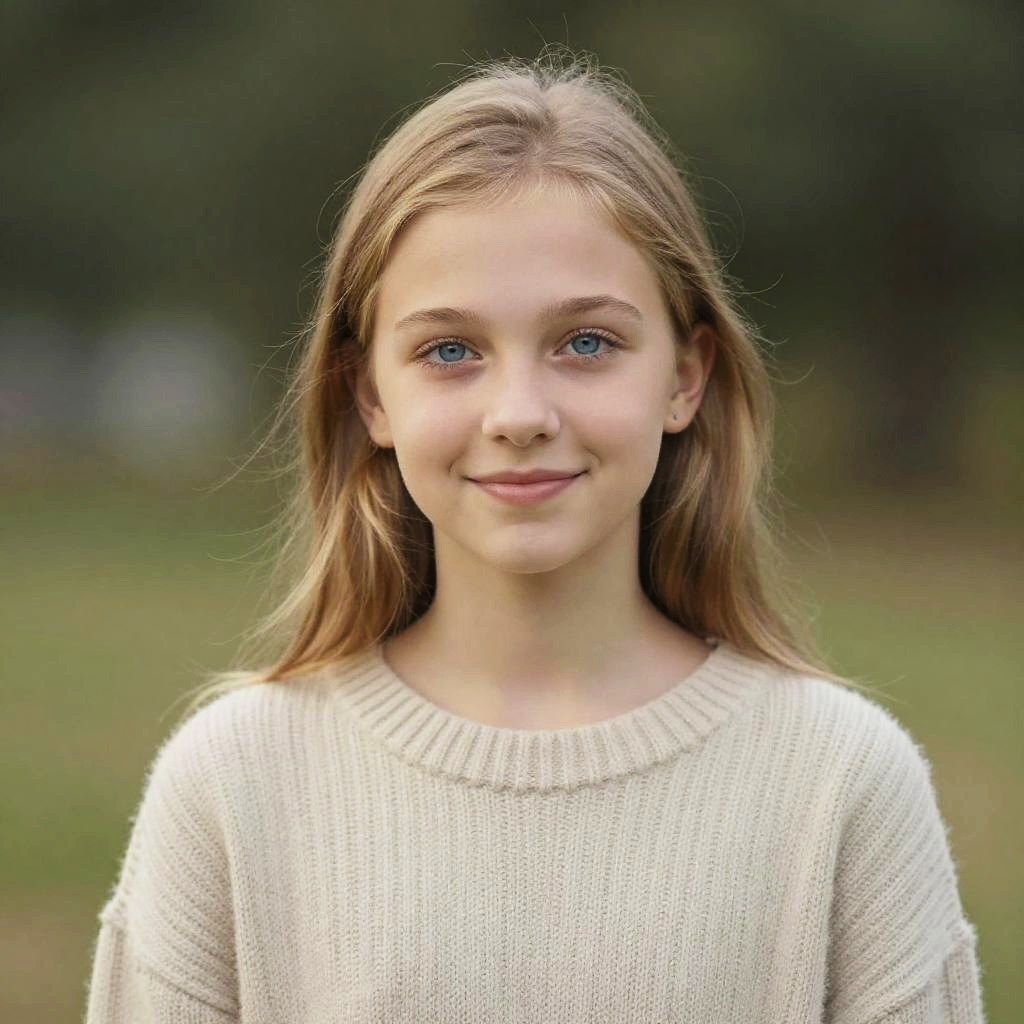 16 year old white girl, portrait photography, natural light, soft focus, casual smile, outdoors, spring background, detailed skin texture, vibrant colors