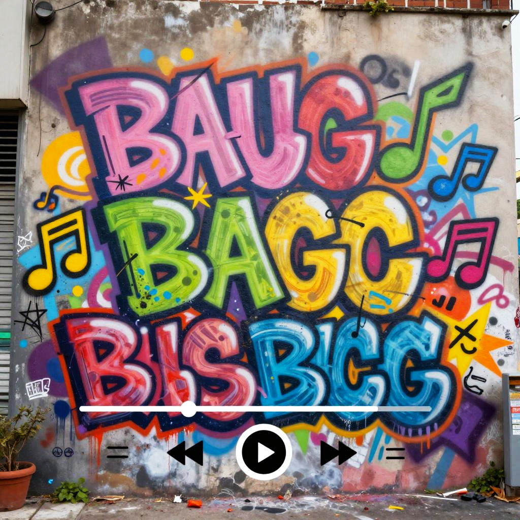 Random playlist cover with a vibrant street art mural style, combining graffiti typography, colorful musical icons, bold brush strokes, and urban textures, reflecting an edgy, spontaneous, and diverse musical experience that mixes genres and moods.