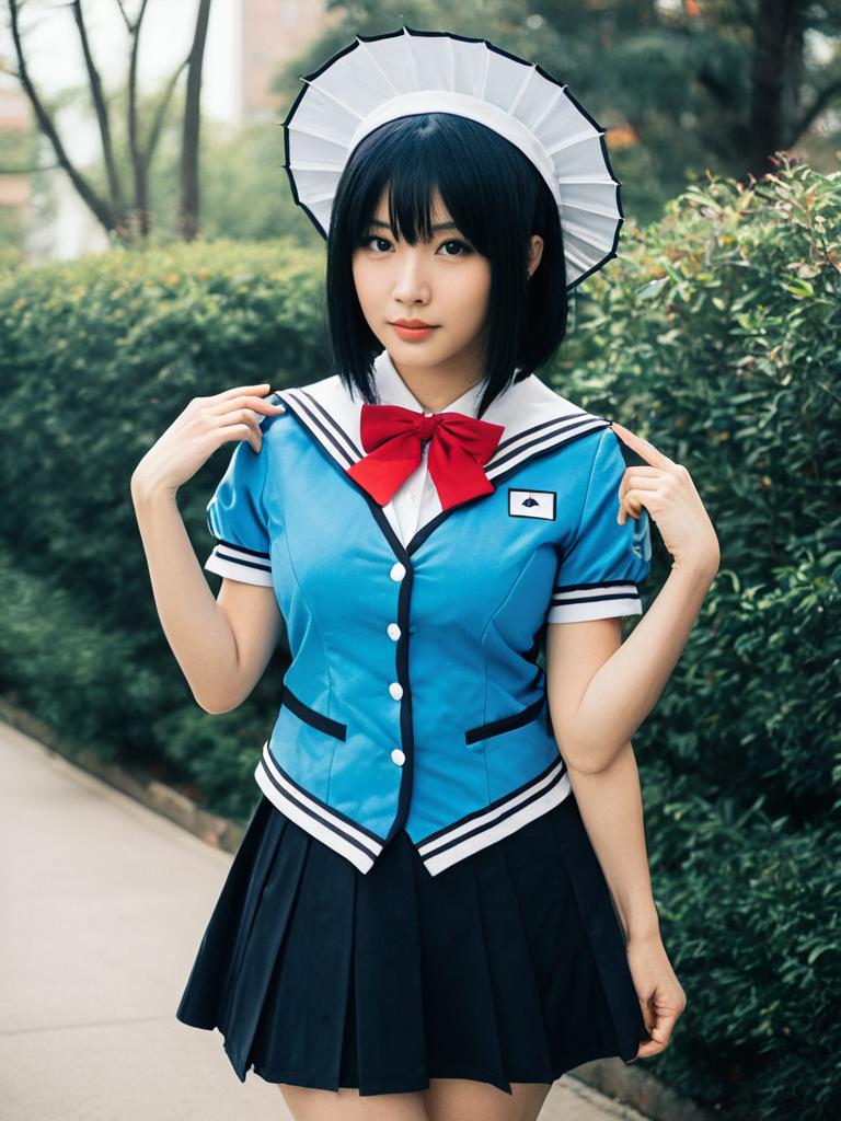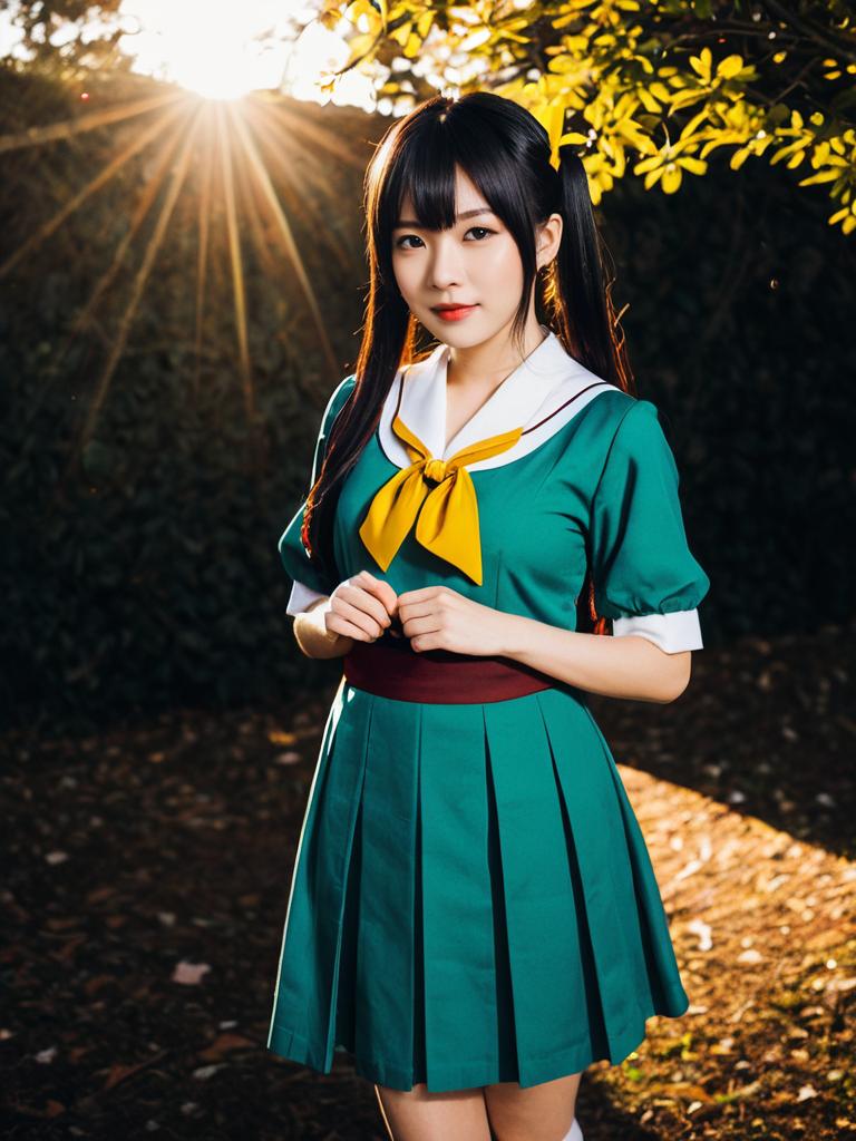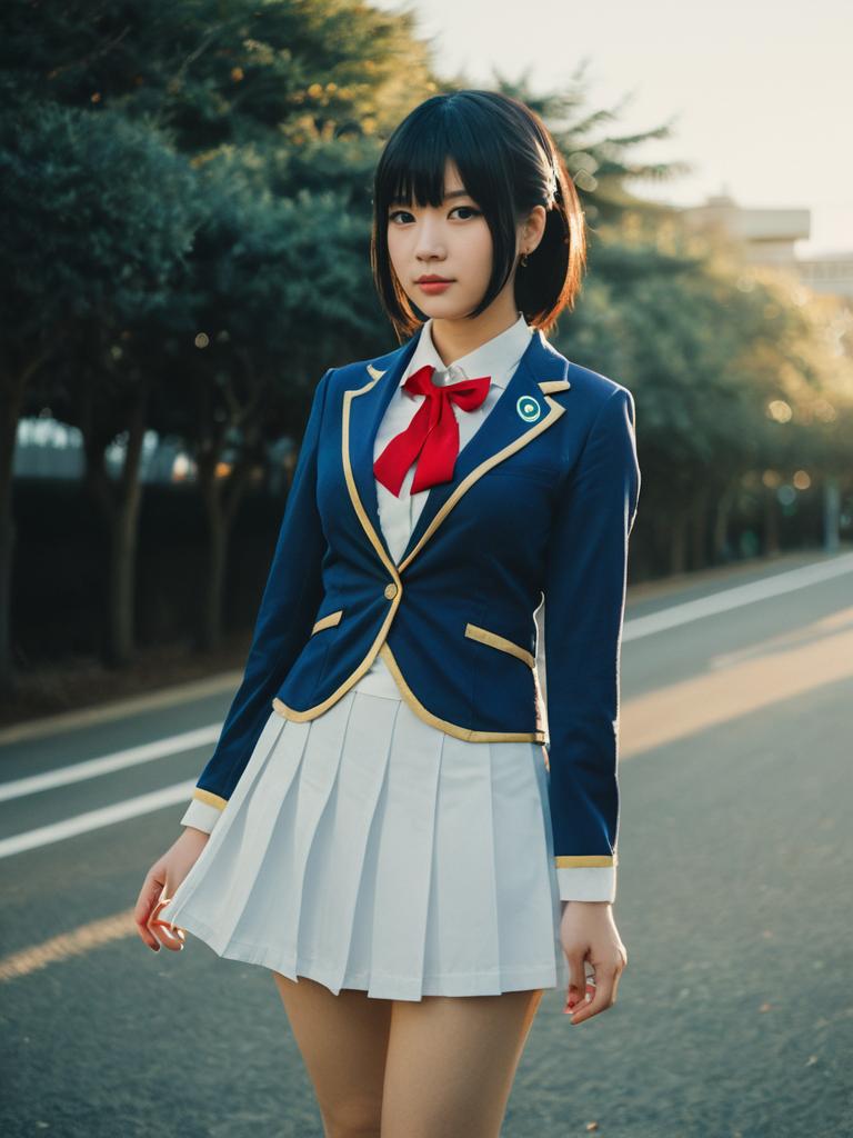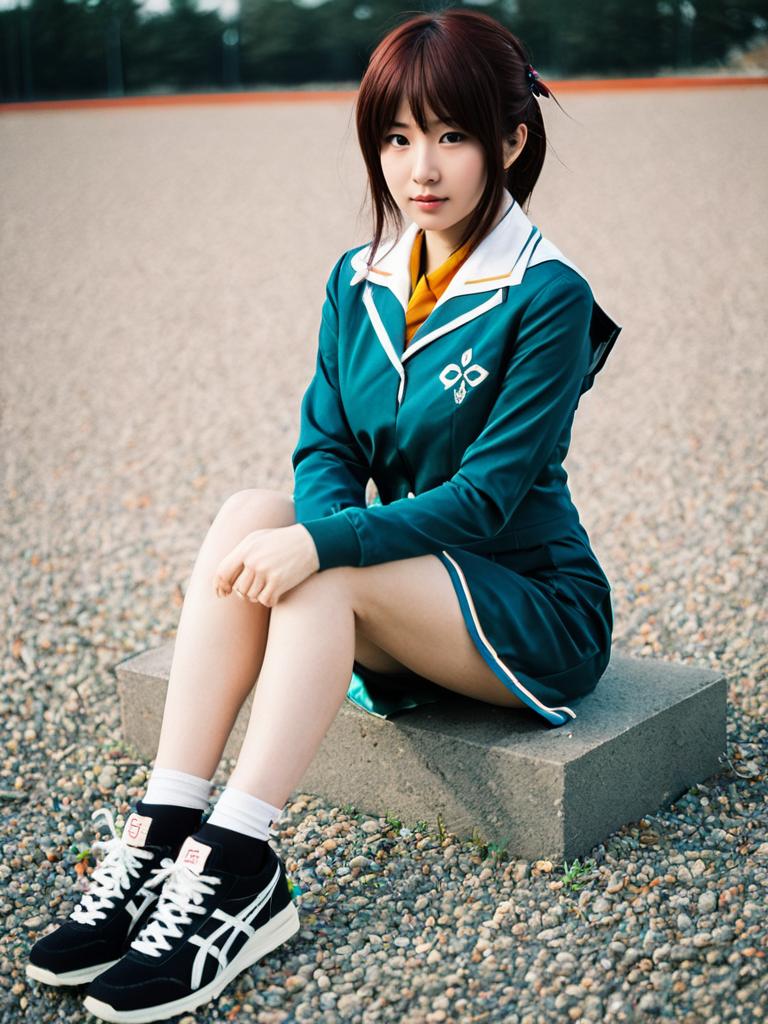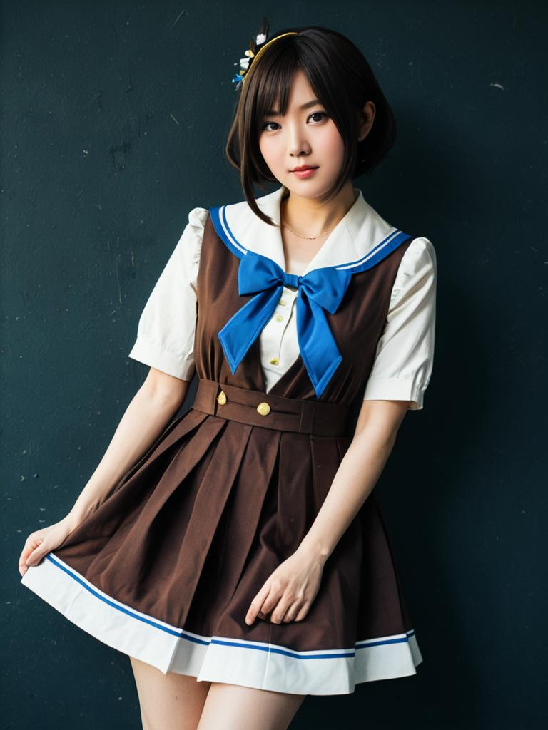 Sexy cosplay woman character wearing Natsumi Onitsuka costume. Realistic photo. Jane Doe dressed as Natsumi Onitsuka --sref 1388