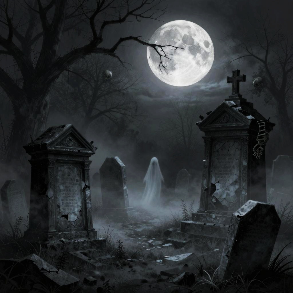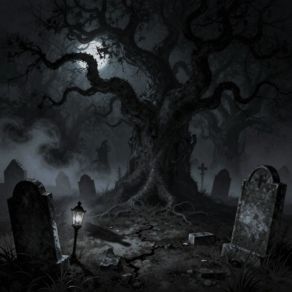 Creepy Graveyard Horror Comic Scene