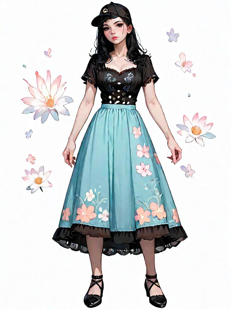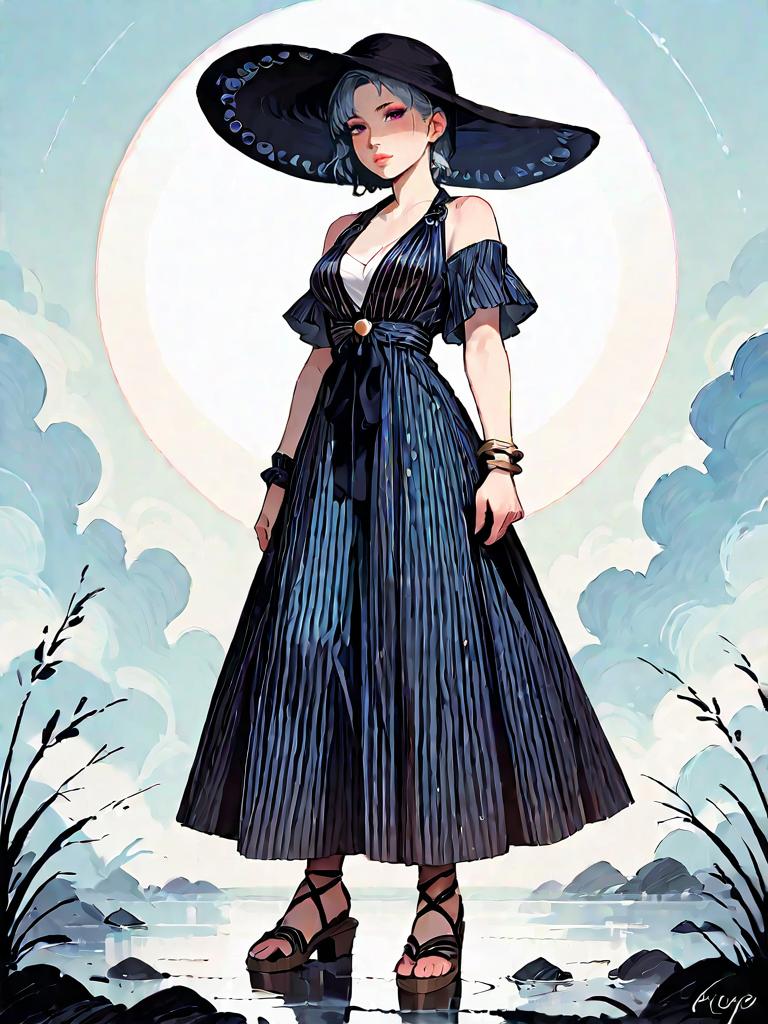 Dark Fantasy Woman in Elegant Dress and Wide-Brimmed Hat