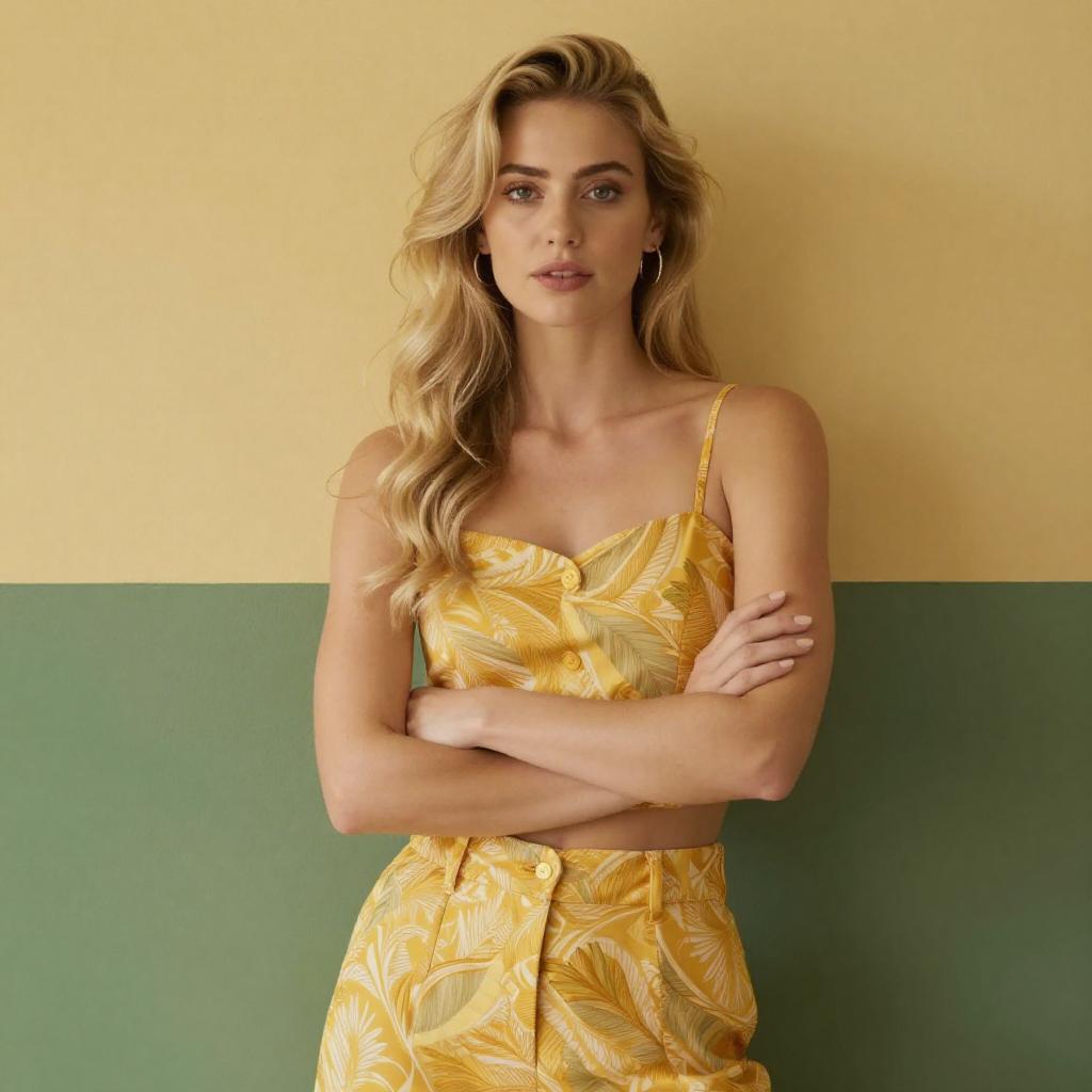 Pensive Blonde Woman in Floral Dress