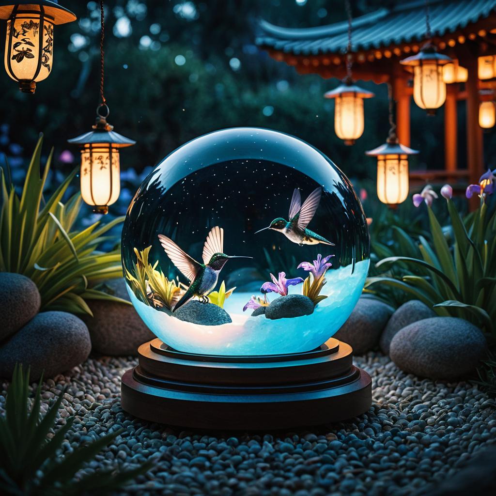 A magical crystal ball containing a celestial harper named Lyra, surrounded by a floating observatory and dazzling starshine, hyperrealistic, surreal, ultra-detailed, cinematic, and dynamic composition