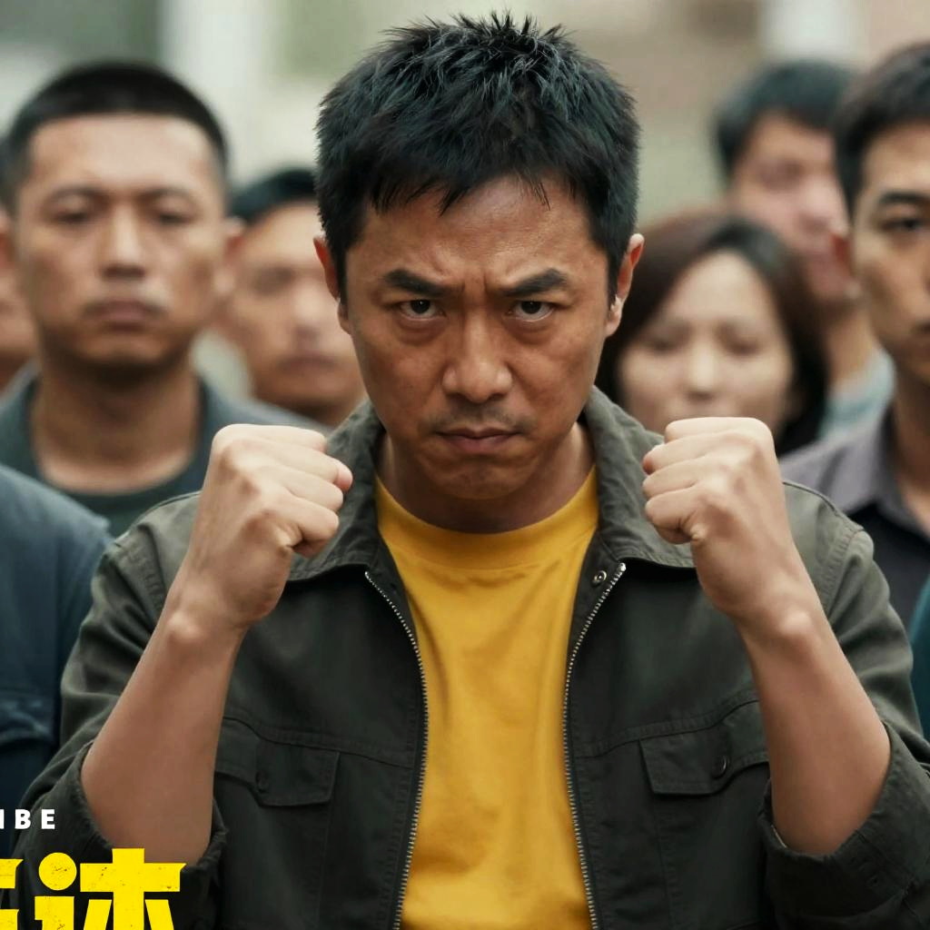 Photograph of a middle-aged man with dark hair, wearing a black jacket over a yellow shirt, clenched fists raised to his face. Blurred background with seated people. Intense expression. Foreground table partially visible. Medium close-up shot.