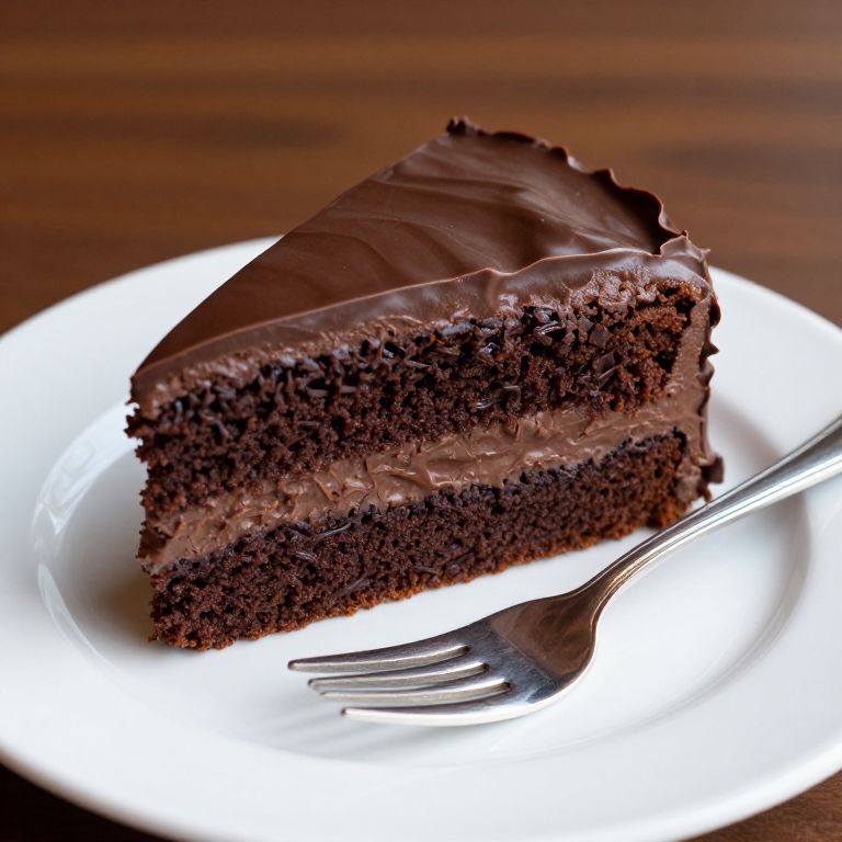 Truluck's Chocolate Malt Cake, served on a pristine white plate with a gleaming silver fork, showcases its rich, moist layers and glossy chocolate frosting, ready to be enjoyed at Truluck's Seafood, Steak and Crab House in downtown Austin, TX.