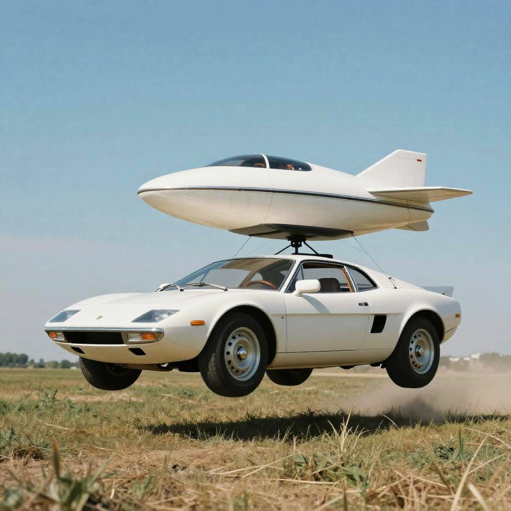 Futuristic Flying Car Over Grassy Field