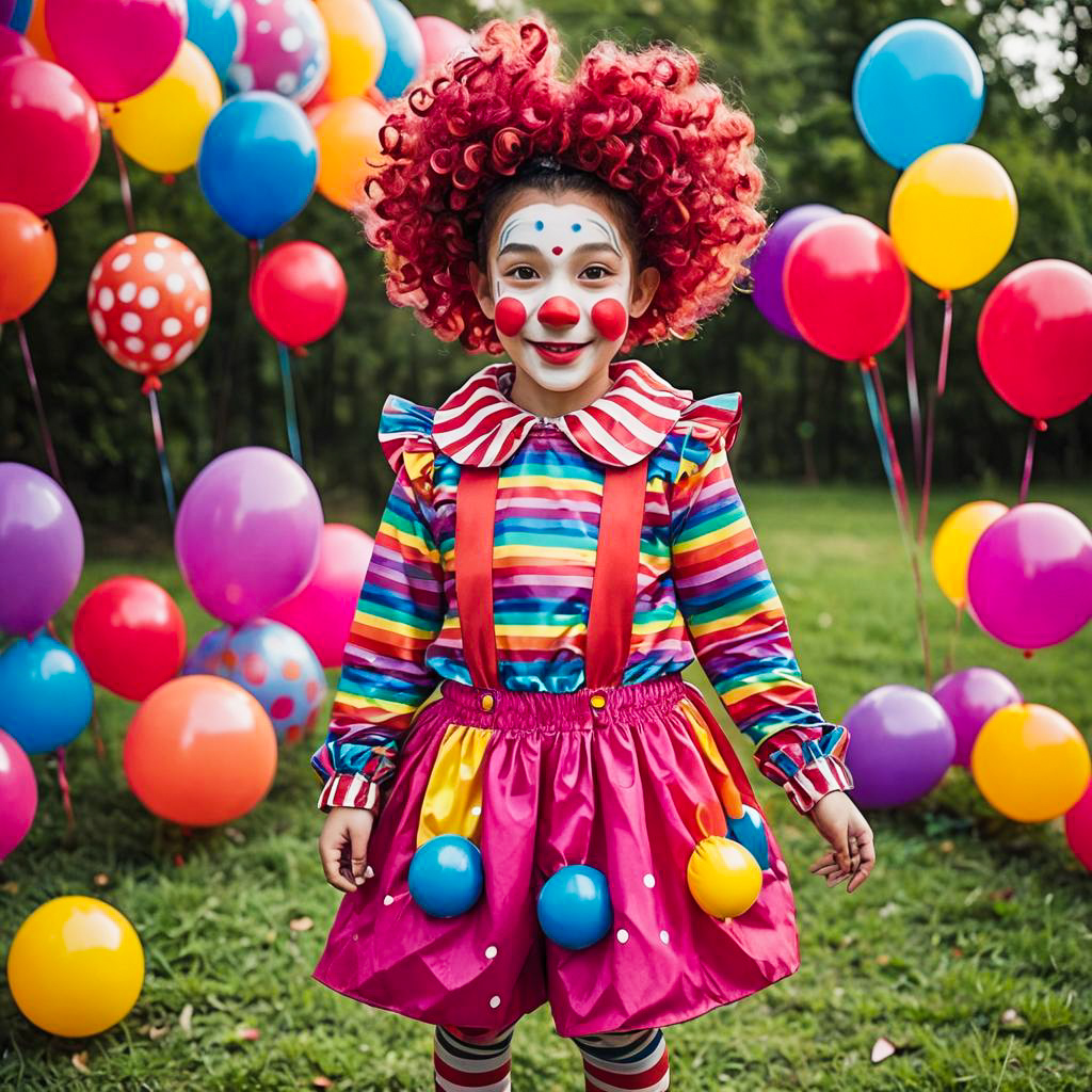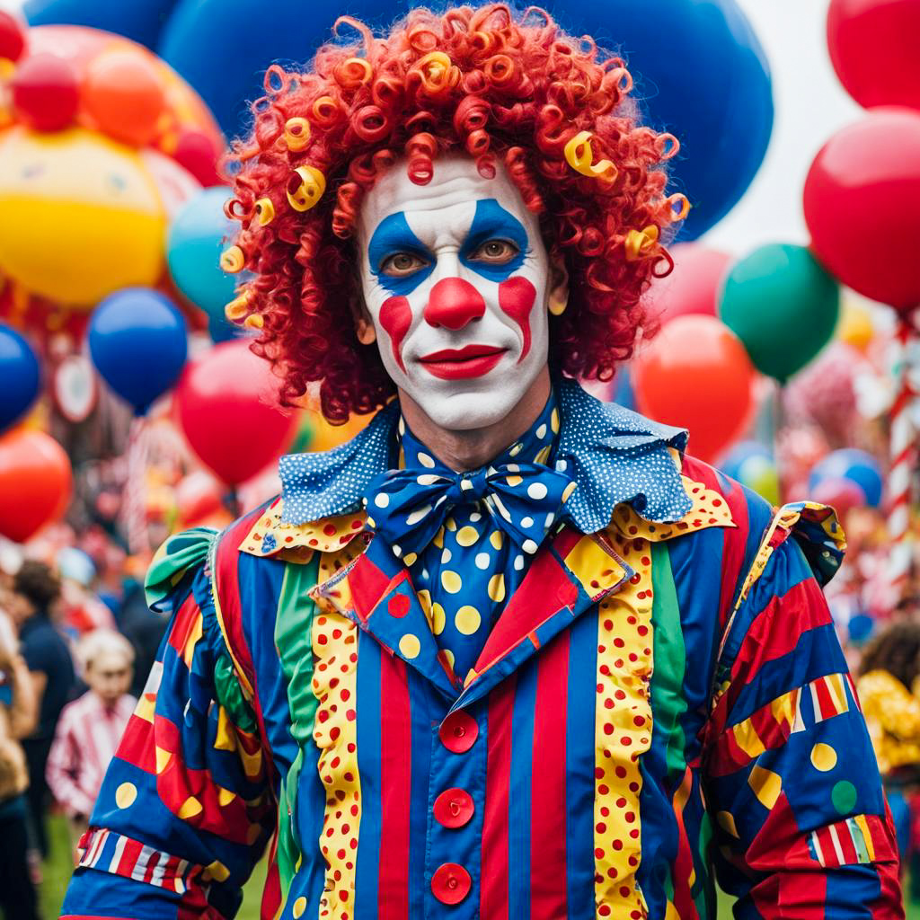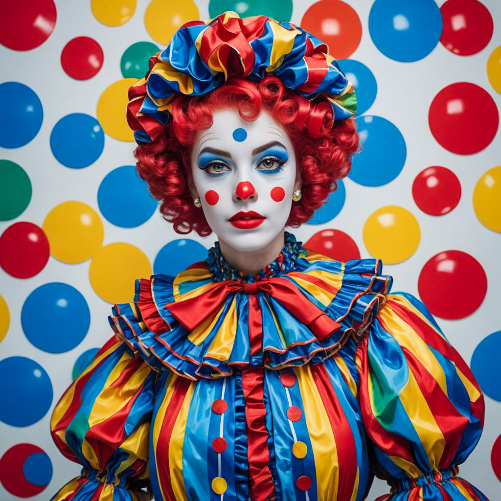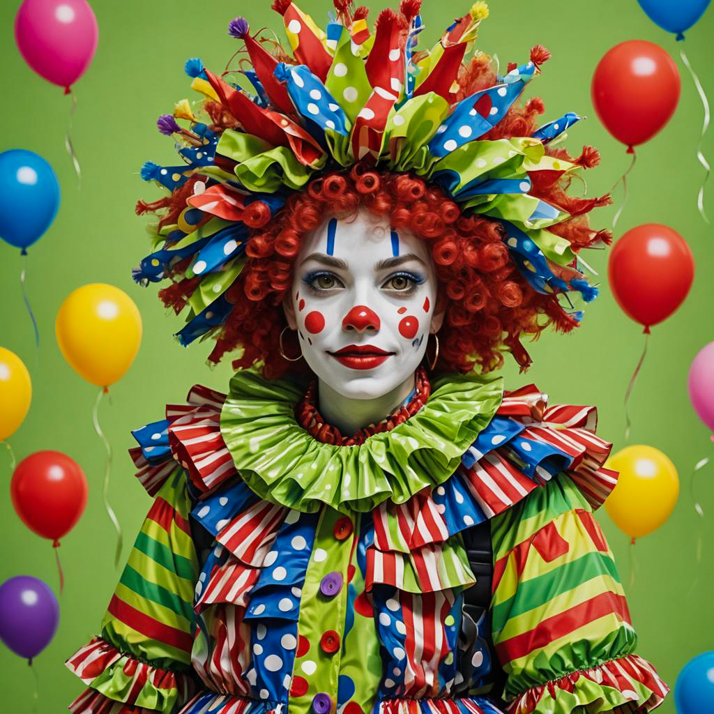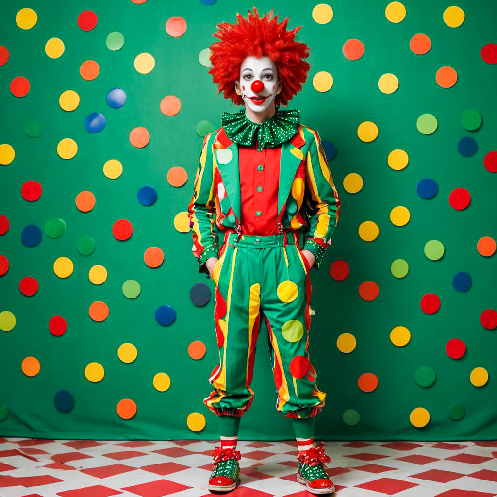 Colorful Clown in Polka Dot Costume